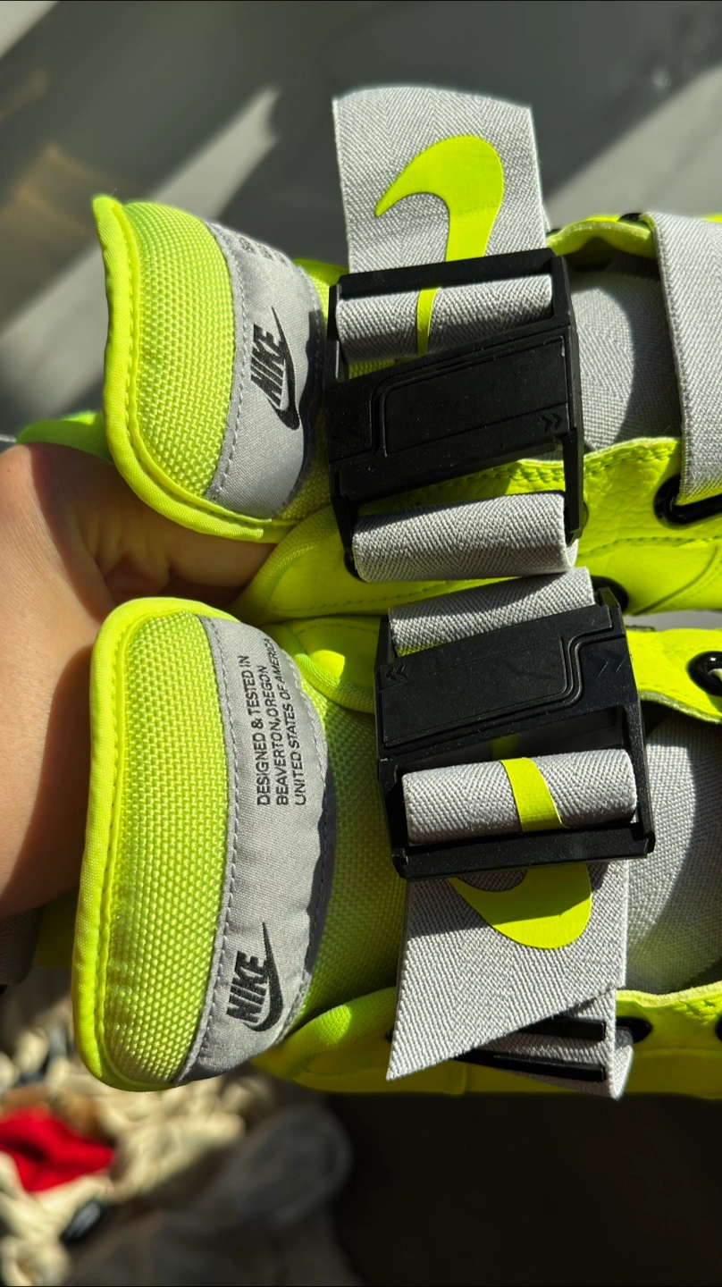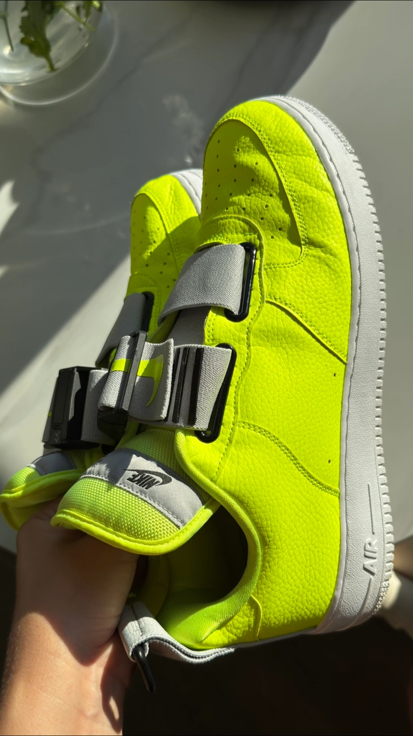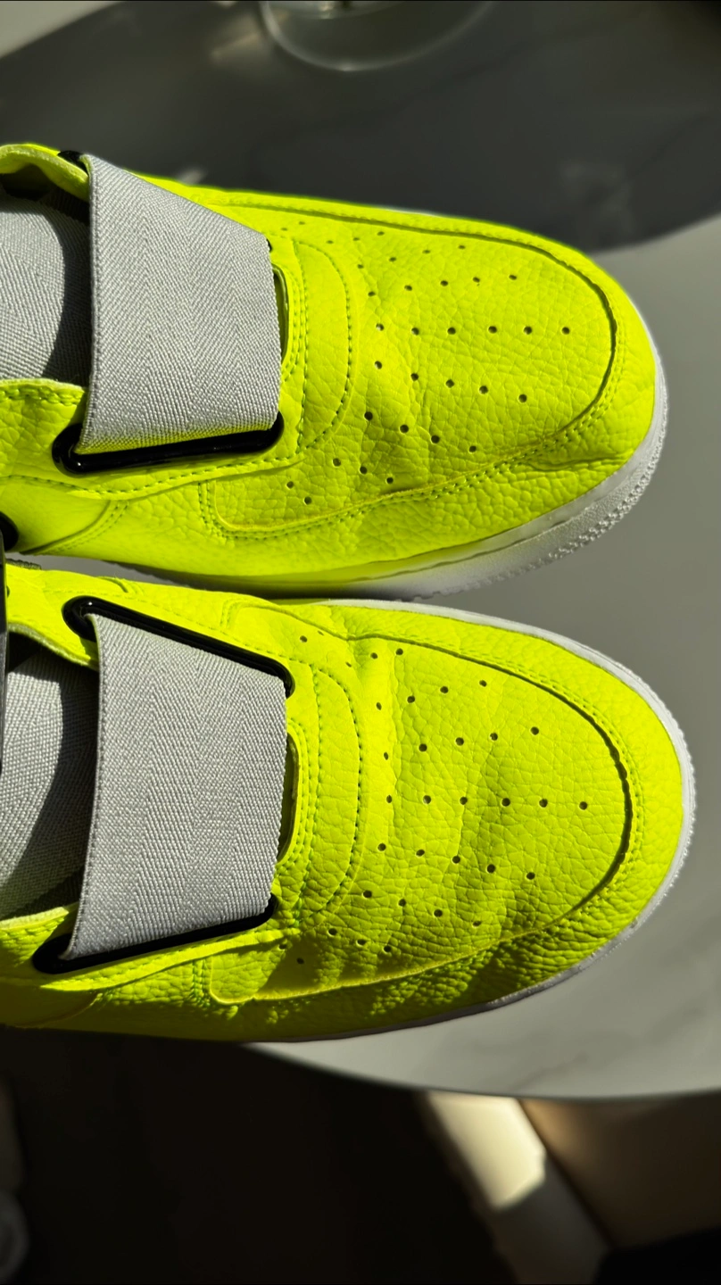 363Selling a pair of Nike Air Force 1 High Utility 2.0 in a vibrant volt colour! These shoes are designed for both style and function, perfect for adding a pop of colour to your outfit while providing great support and durability. They have a unique strap design and are in excellent condition, ready for a new home!