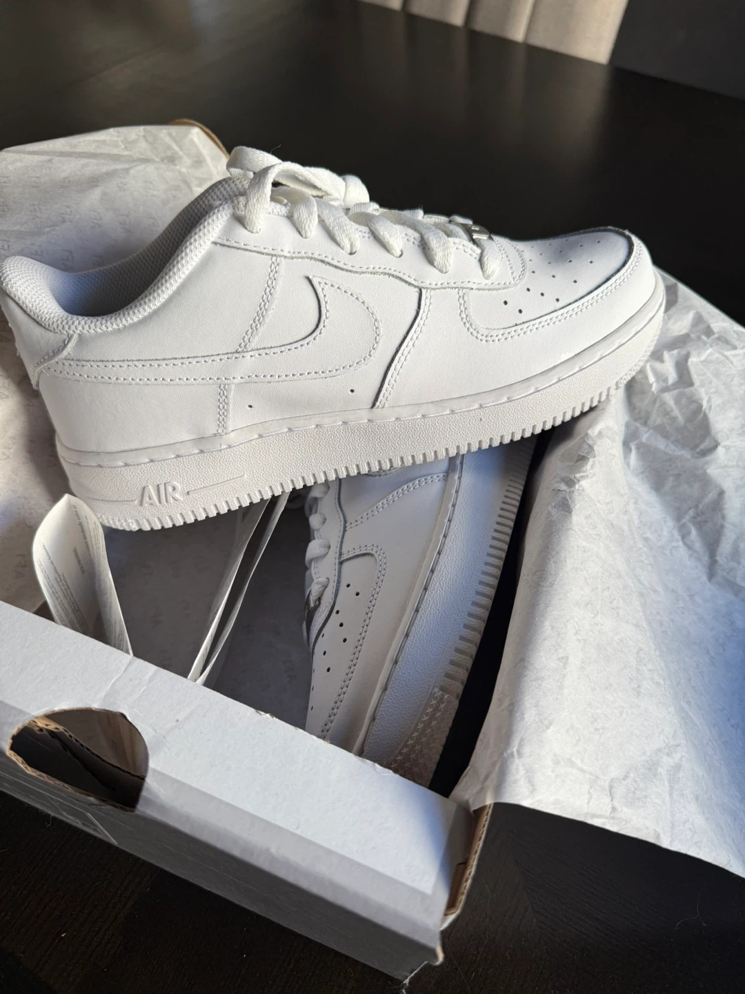 Selling a pair of Nike Air Force 1 LE (GS) in white. These are youth size 6.5. Comes with the original box!