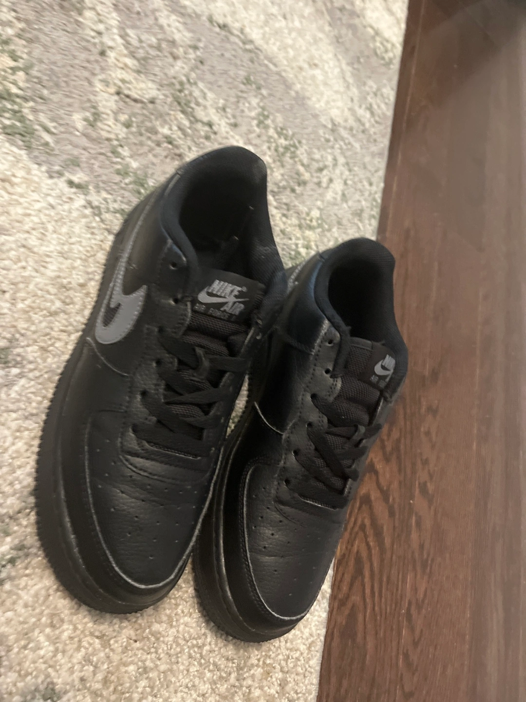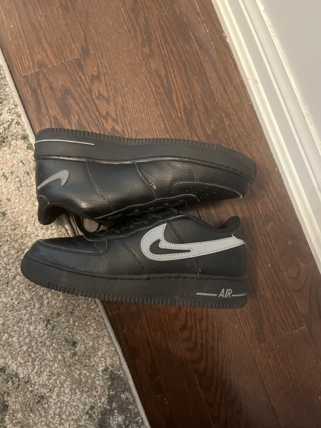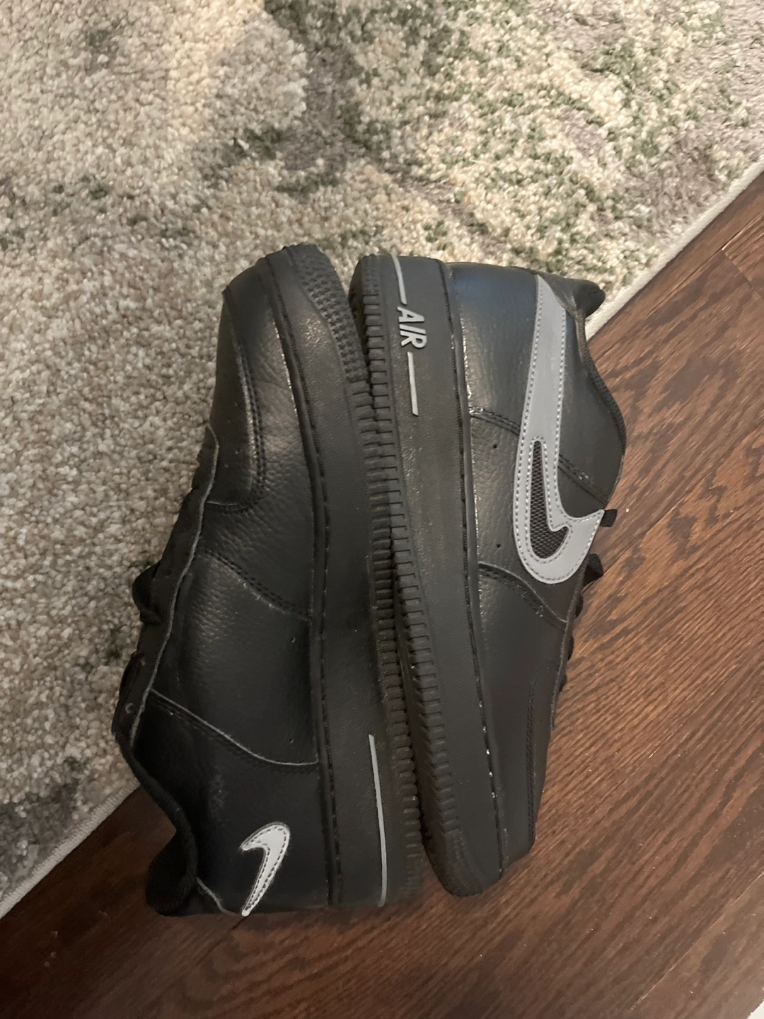 Selling a pair of Nike Air Force 1 Low sneakers in black with grey accents. They're in good condition and ready for a new home!