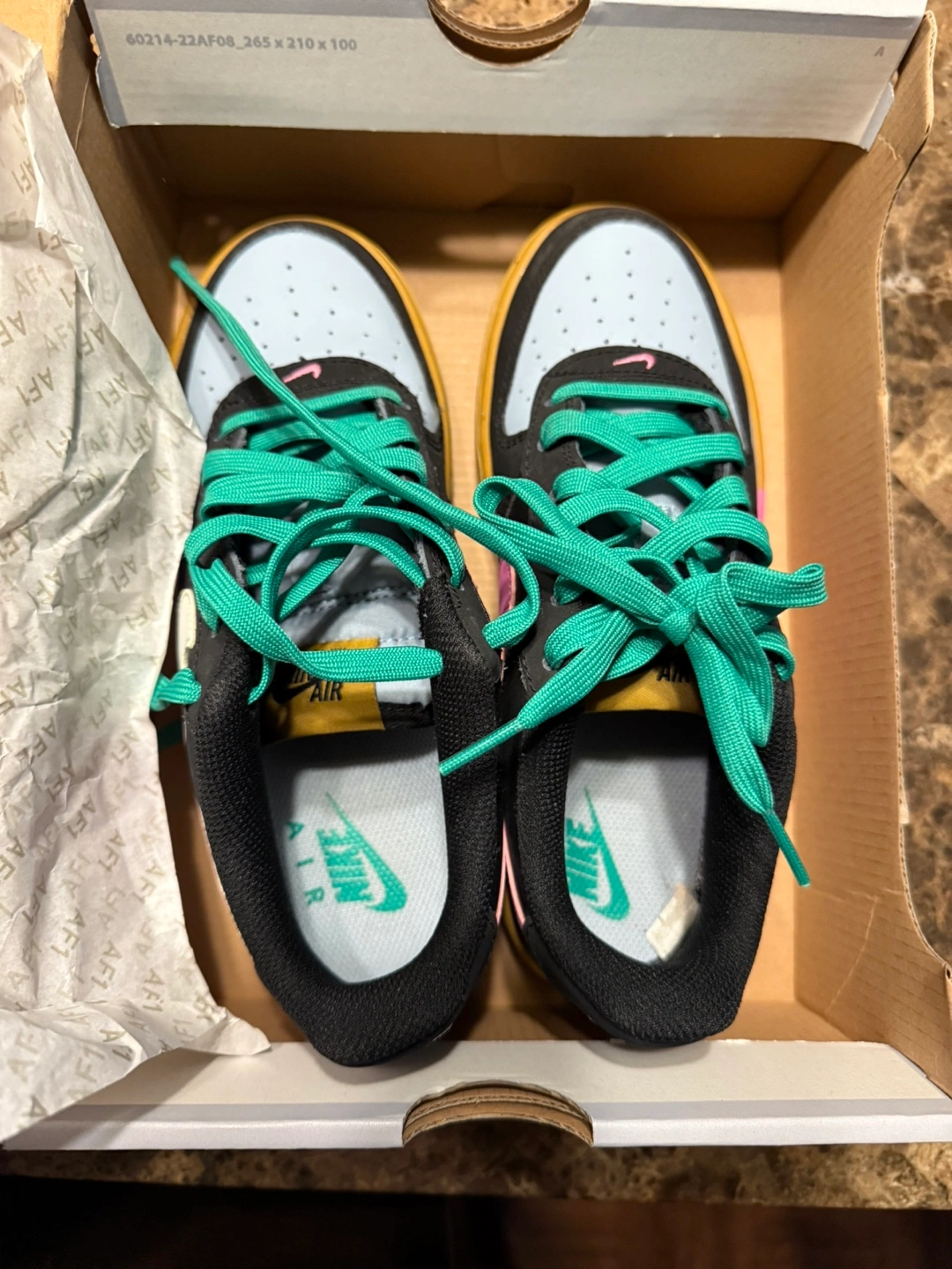 Selling a pair of Nike Air Force 1 LV8 2 (GS) in size 3.5Y. These shoes come with the original box. They feature a unique colourway.