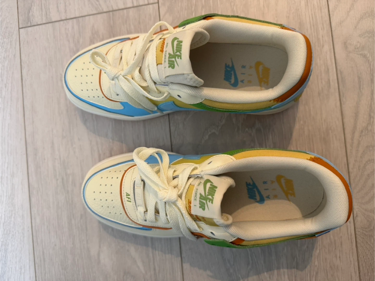 86These Nike Air Force 1 Low SE sneakers have a fun colourway, They're in great condition and ready for a new home. The size is US Women's. Shoes are brand new and never worn before. Shoes were part of Nike mystery box so comes without a box. Same size sells for$300+ on Goat.