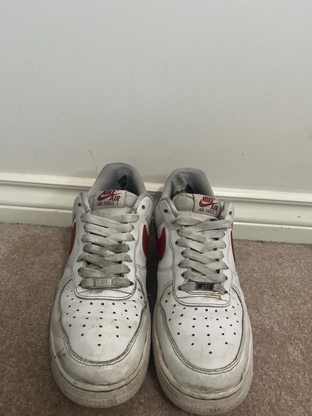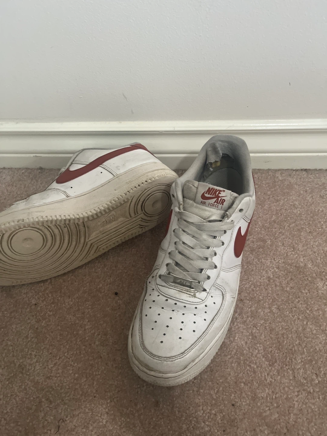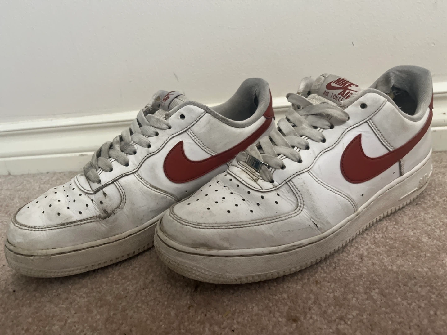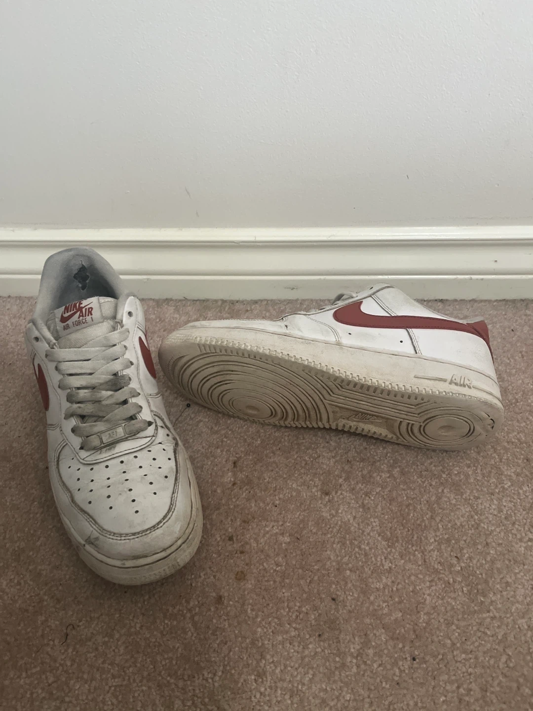 10Selling a pair of Nike Air Force 1 sneakers. They show signs of wear, as you can see in the photos. Still lots of life left in them!