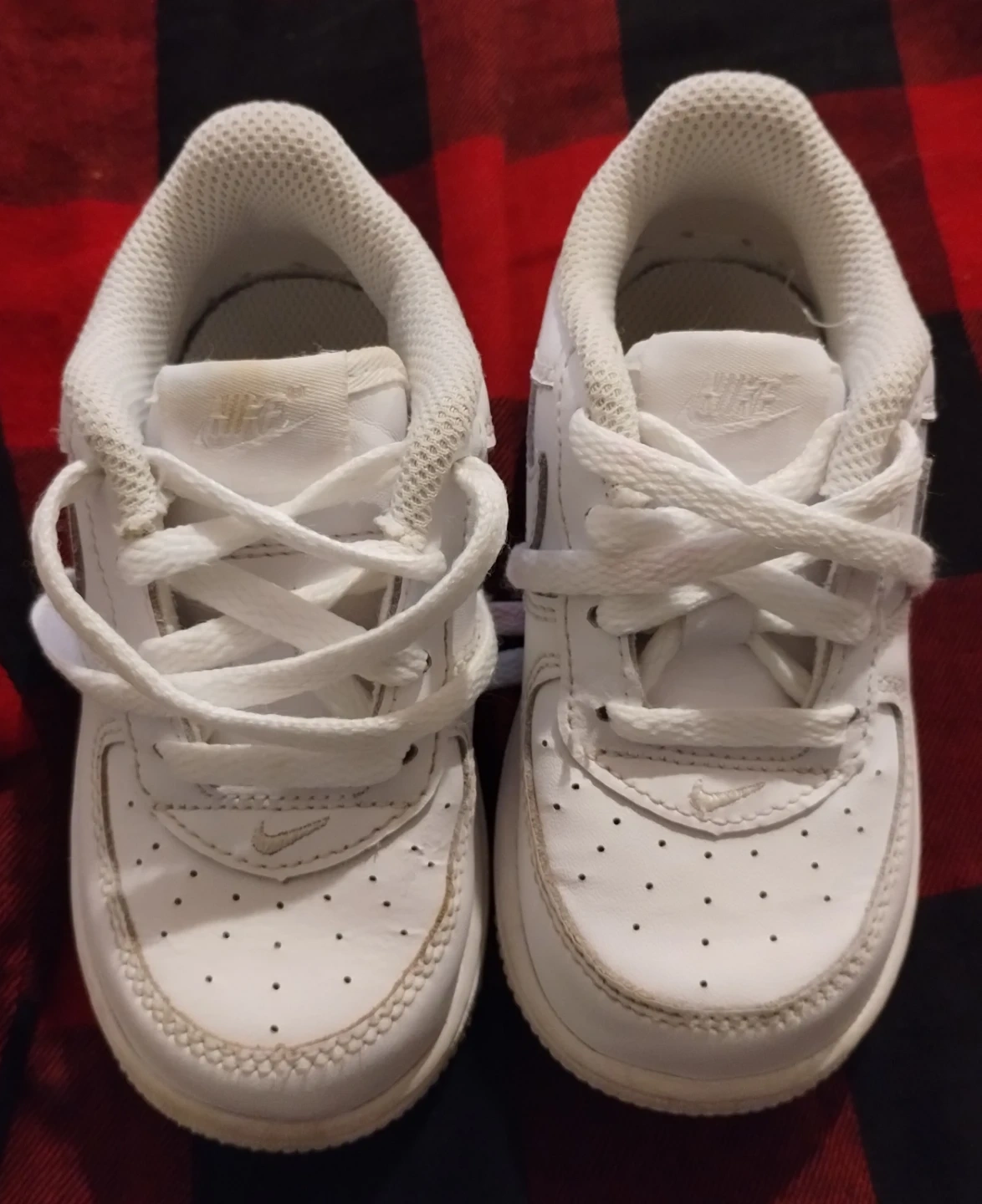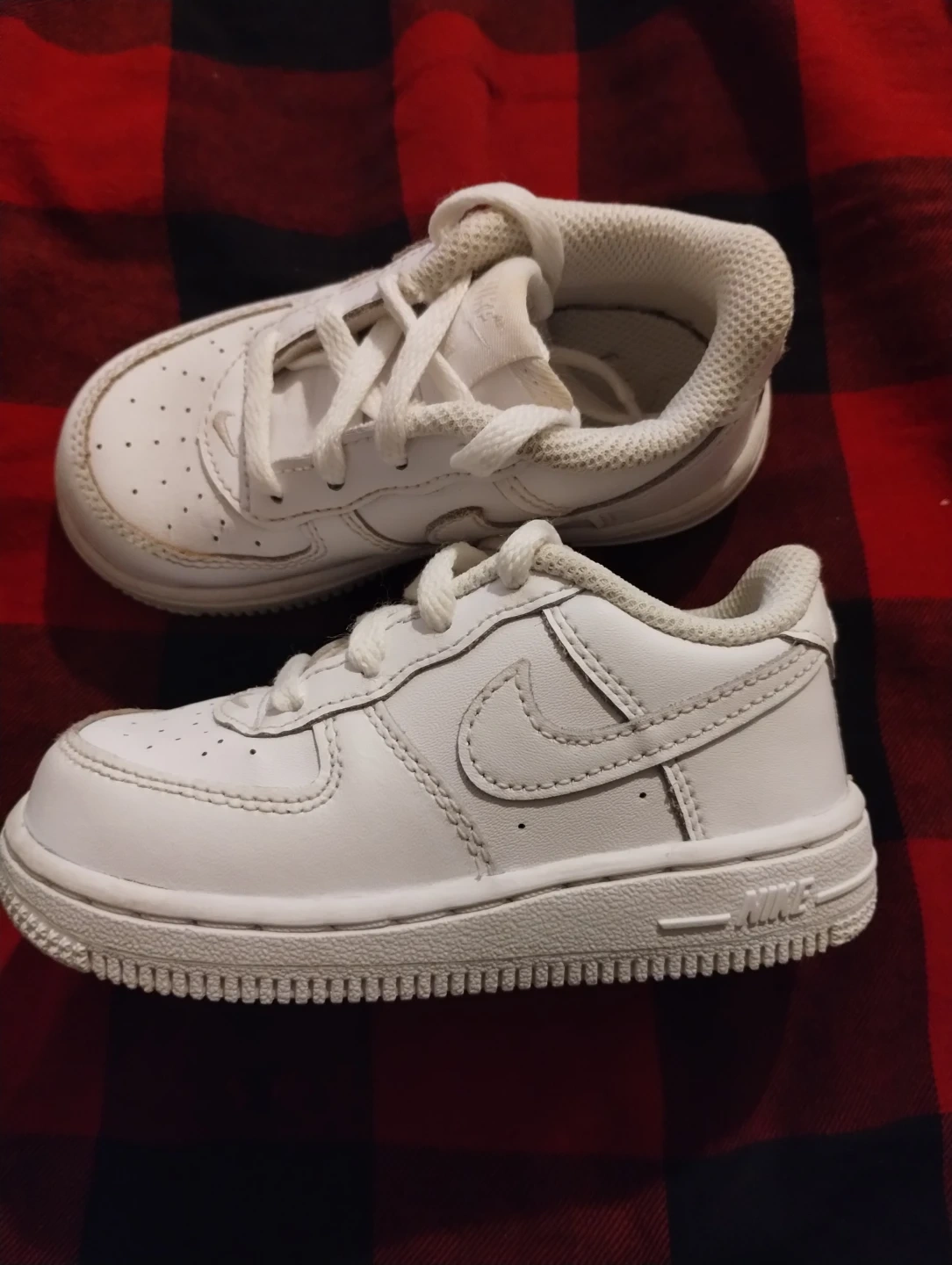 50Selling a pair of toddler-sized Nike Air Force 1s in white! They're in good condition and ready for a new home. Size 7C PU LAKESHORE AND MIMICO
