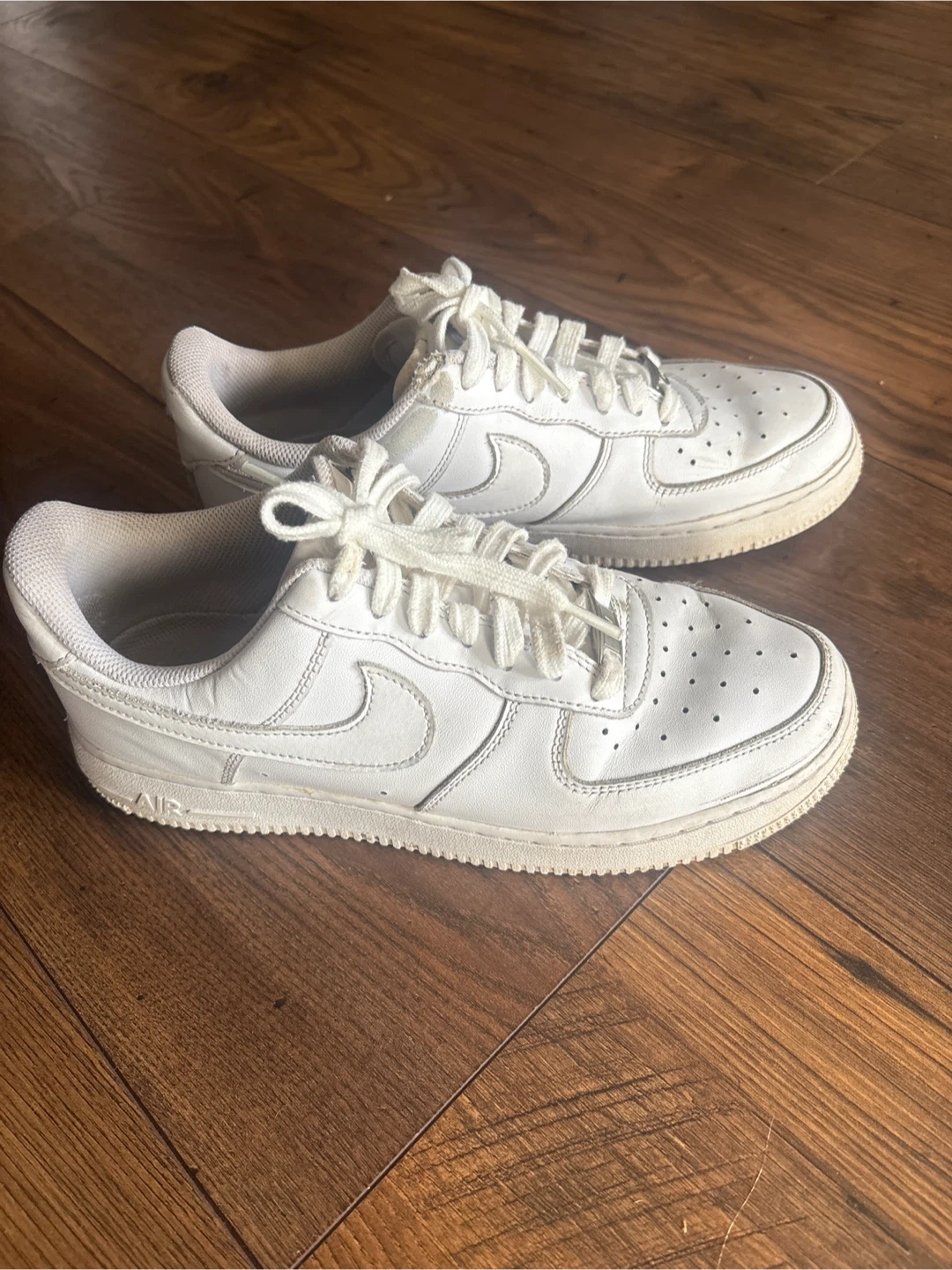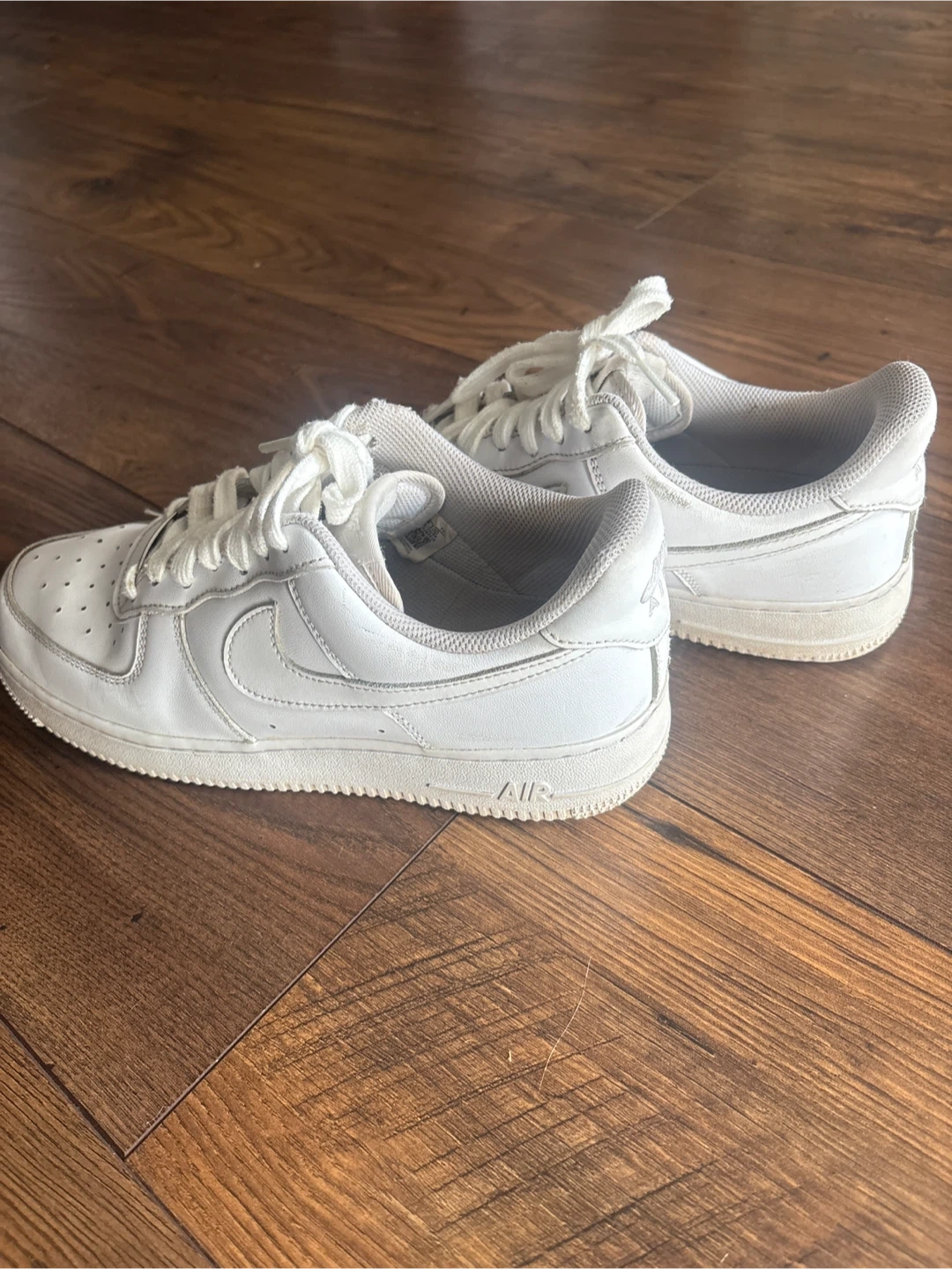 10Selling a pair of classic Nike Air Force 1 sneakers in white. They're in good condition and ready for a new home!