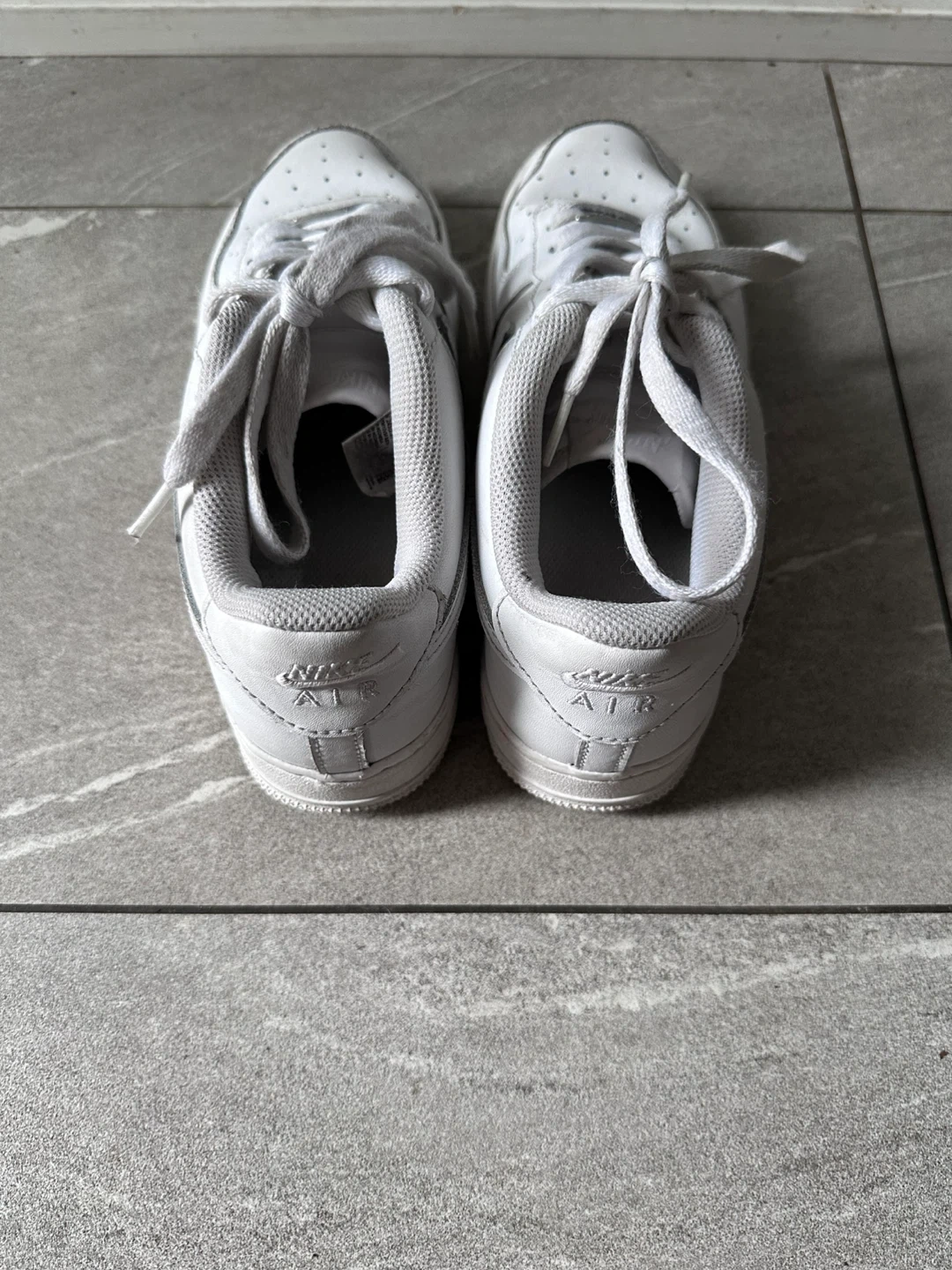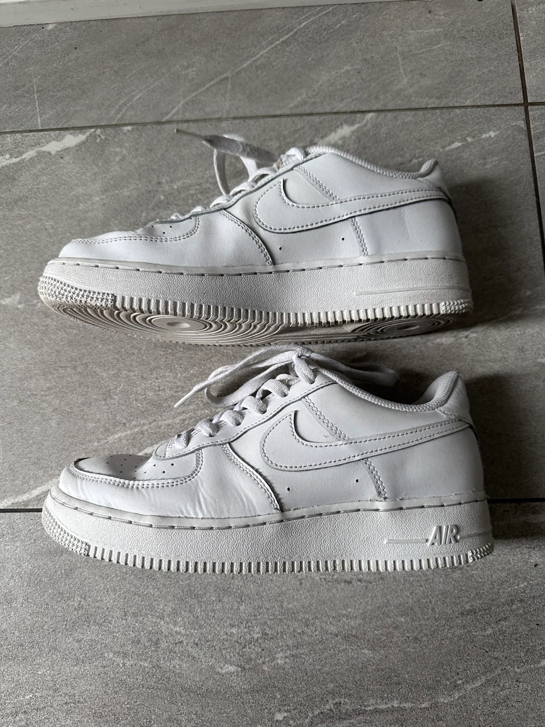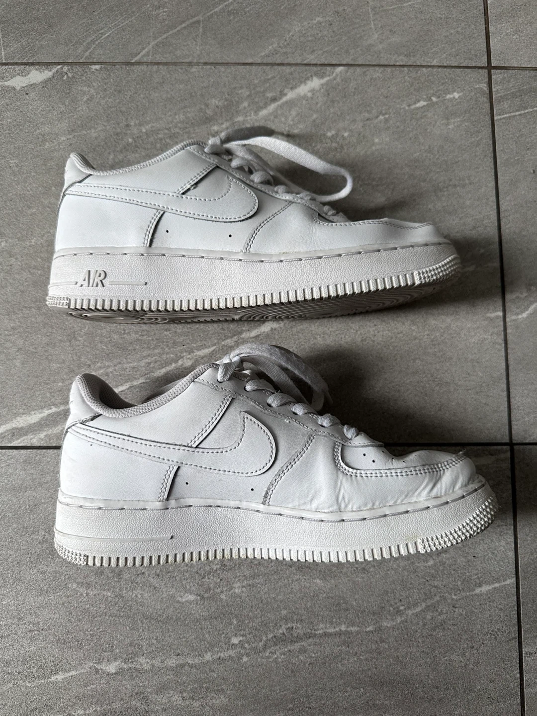 68Selling a pair of classic white Nike Air Force 1 sneakers. They're in good condition, perfect for everyday wear.