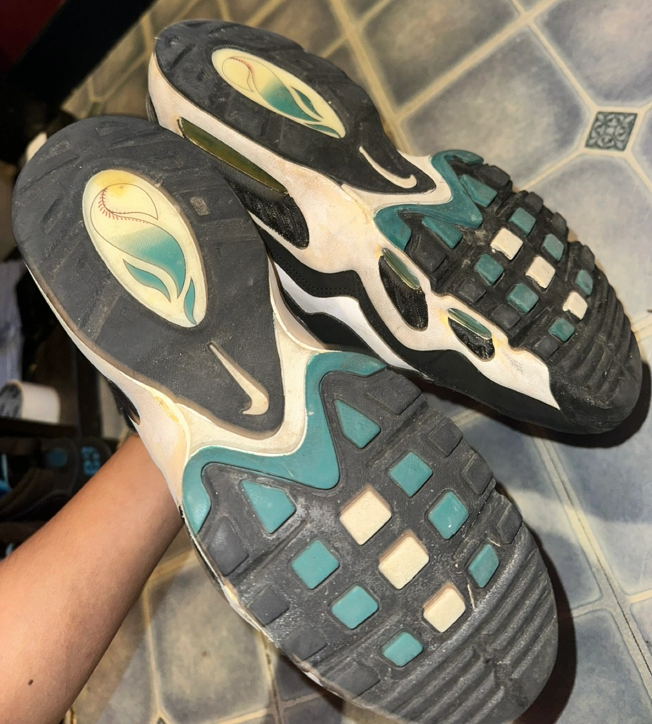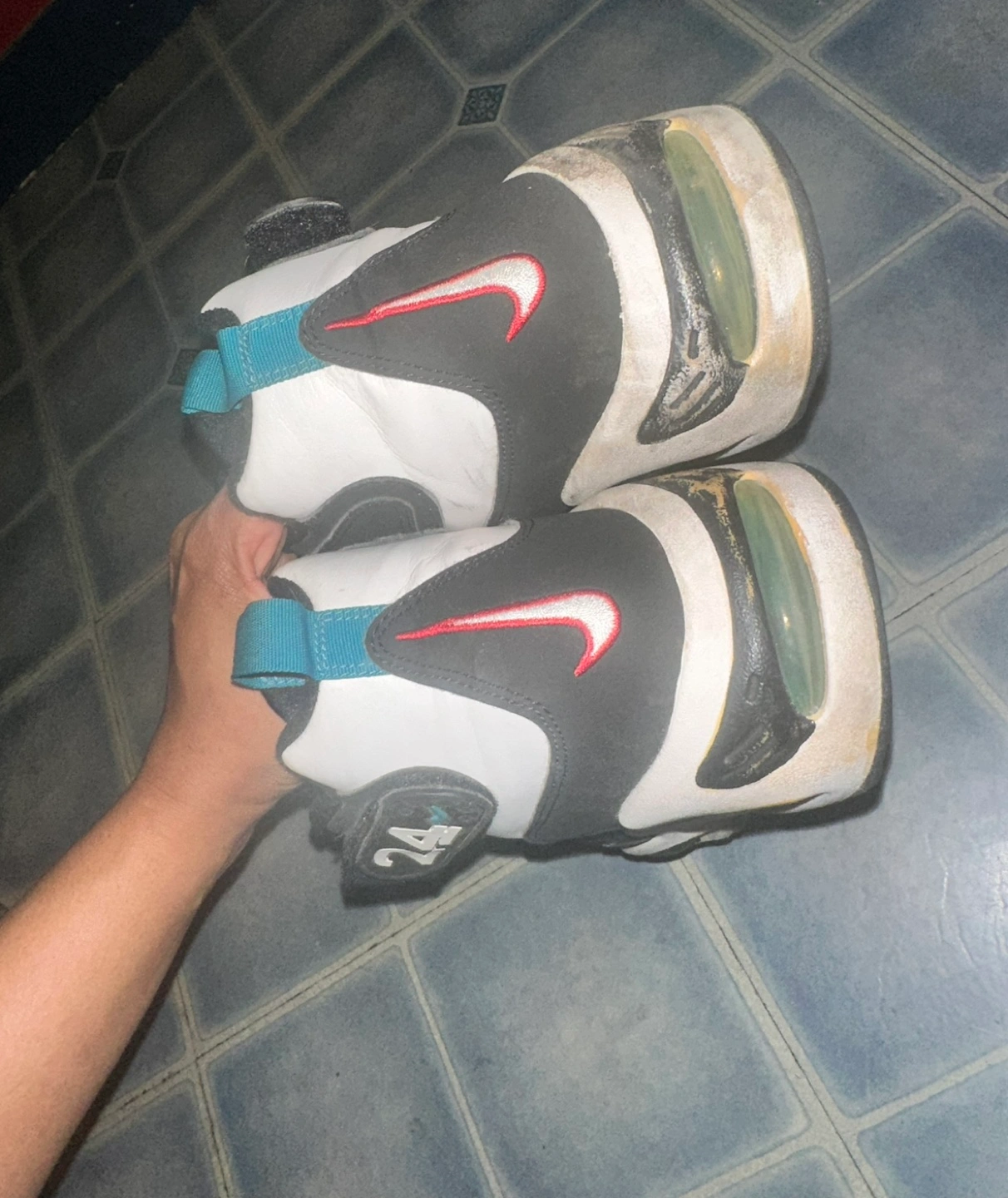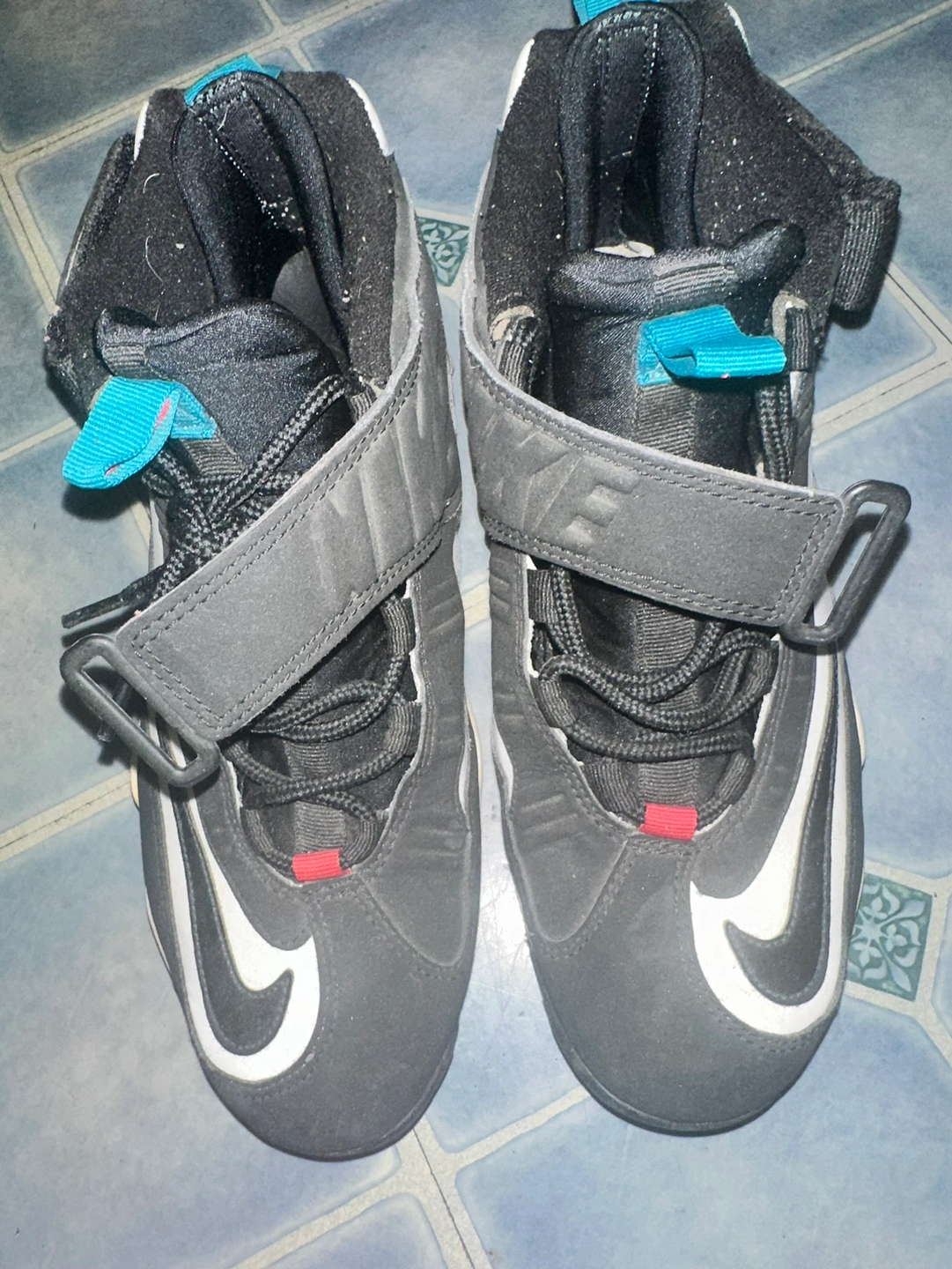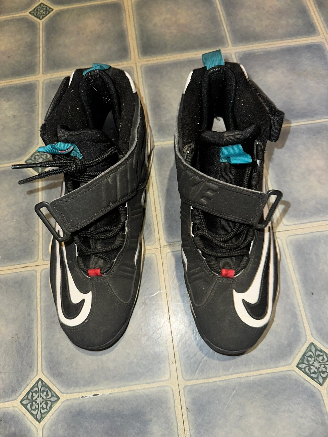 399Black, white, and teal Nike Air Max Uptempo basketball shoes. They are size 9.5 US mens Really good condition Uptempo Kobe flyknit retro