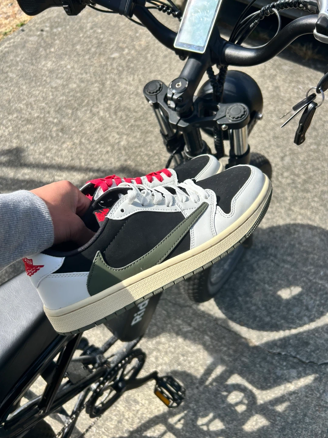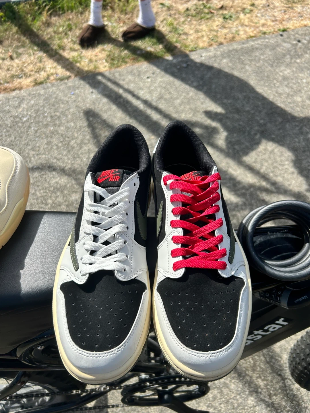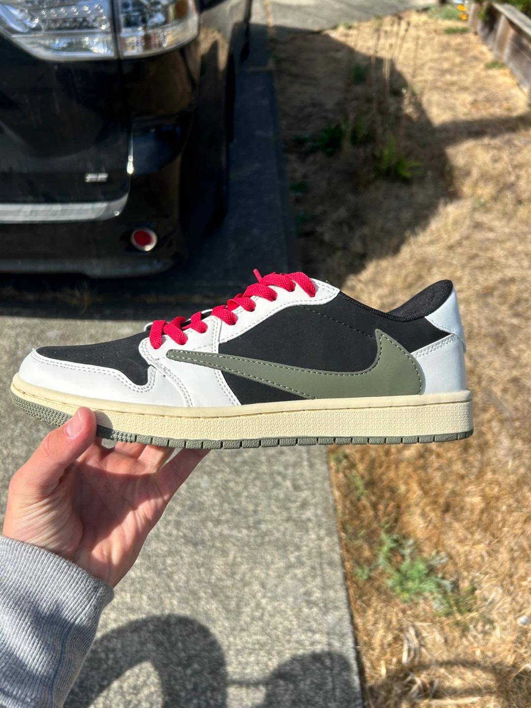 Selling a pair of Nike Air Jordan 1 Low Travis Scott Olive sneakers. These are in great condition and ready for a new home! They feature a stylish design with the iconic Nike and Travis Scott collaboration elements. Perfect for sneaker enthusiasts and casual wear reps