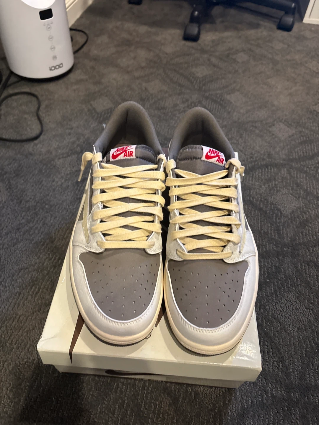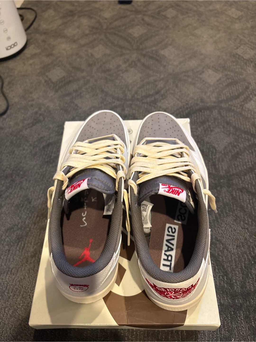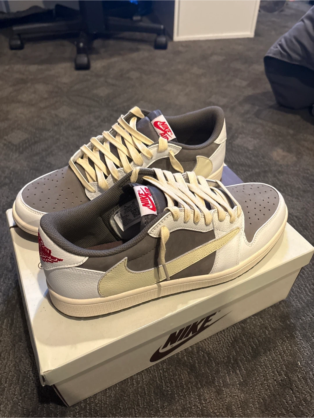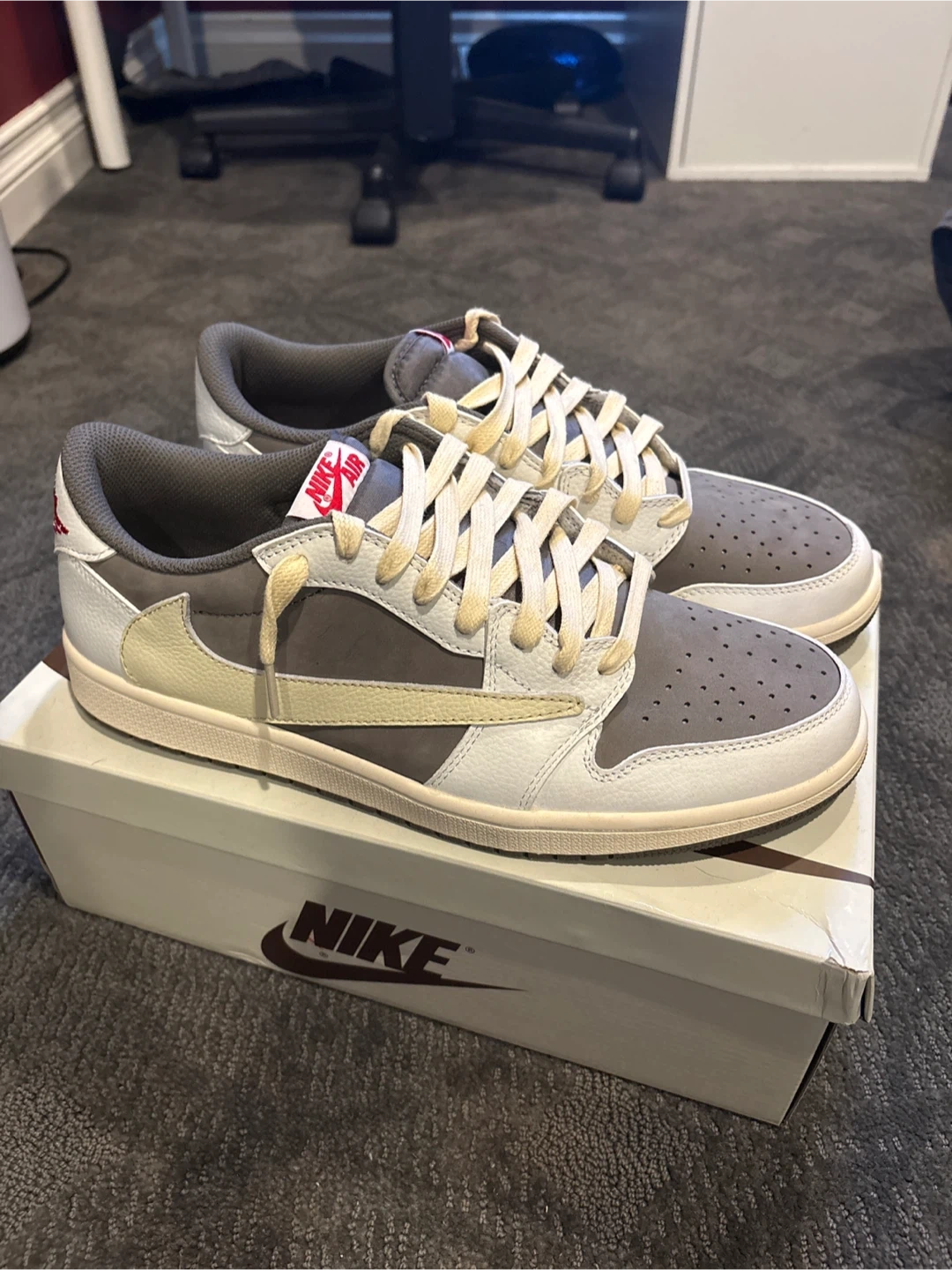 10Selling a pair of Nike Air Jordan 1 Low Travis Scott reverse mocha sneakers. They come with the original box. These stylish shoes are perfect for any sneaker enthusiast!