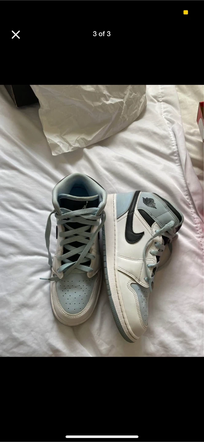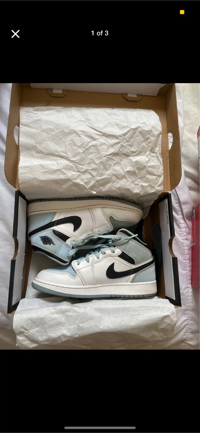 60Selling a pair of Nike Air Jordan 1 Mid in the Ice Blue colourway! bran new used once and come with the original box. They are a size 6 in US sizing.