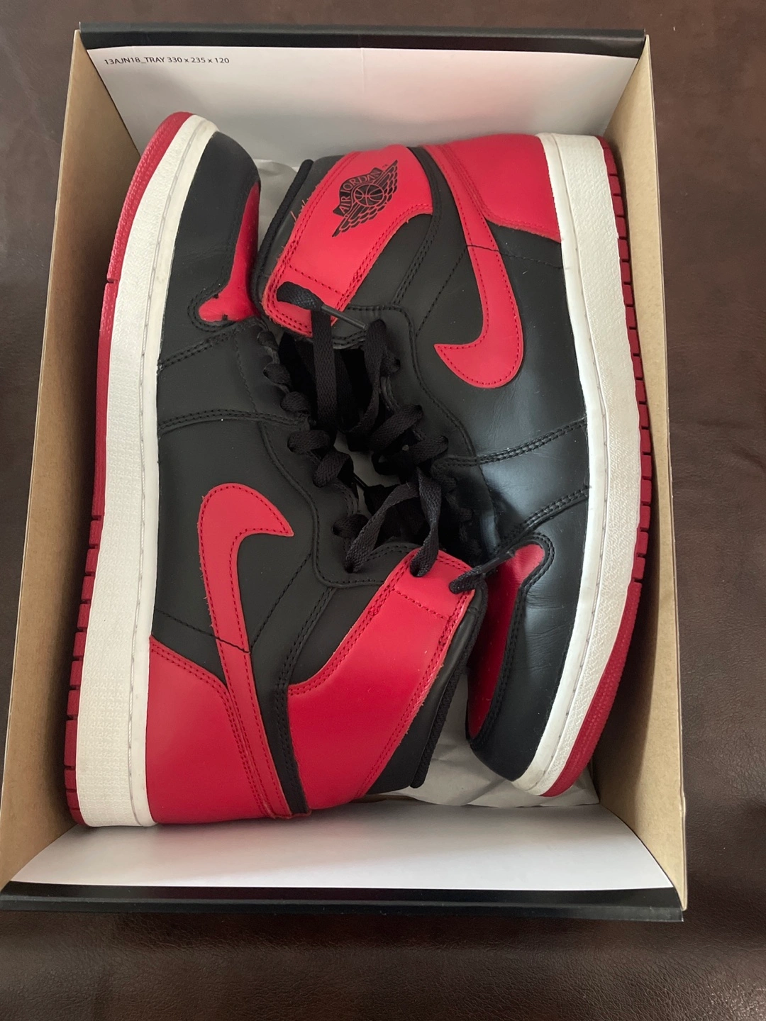 Selling a pair of Nike Air Jordan 1 Retro High in the classic Bred colourway. Worn twice, comes with original box.