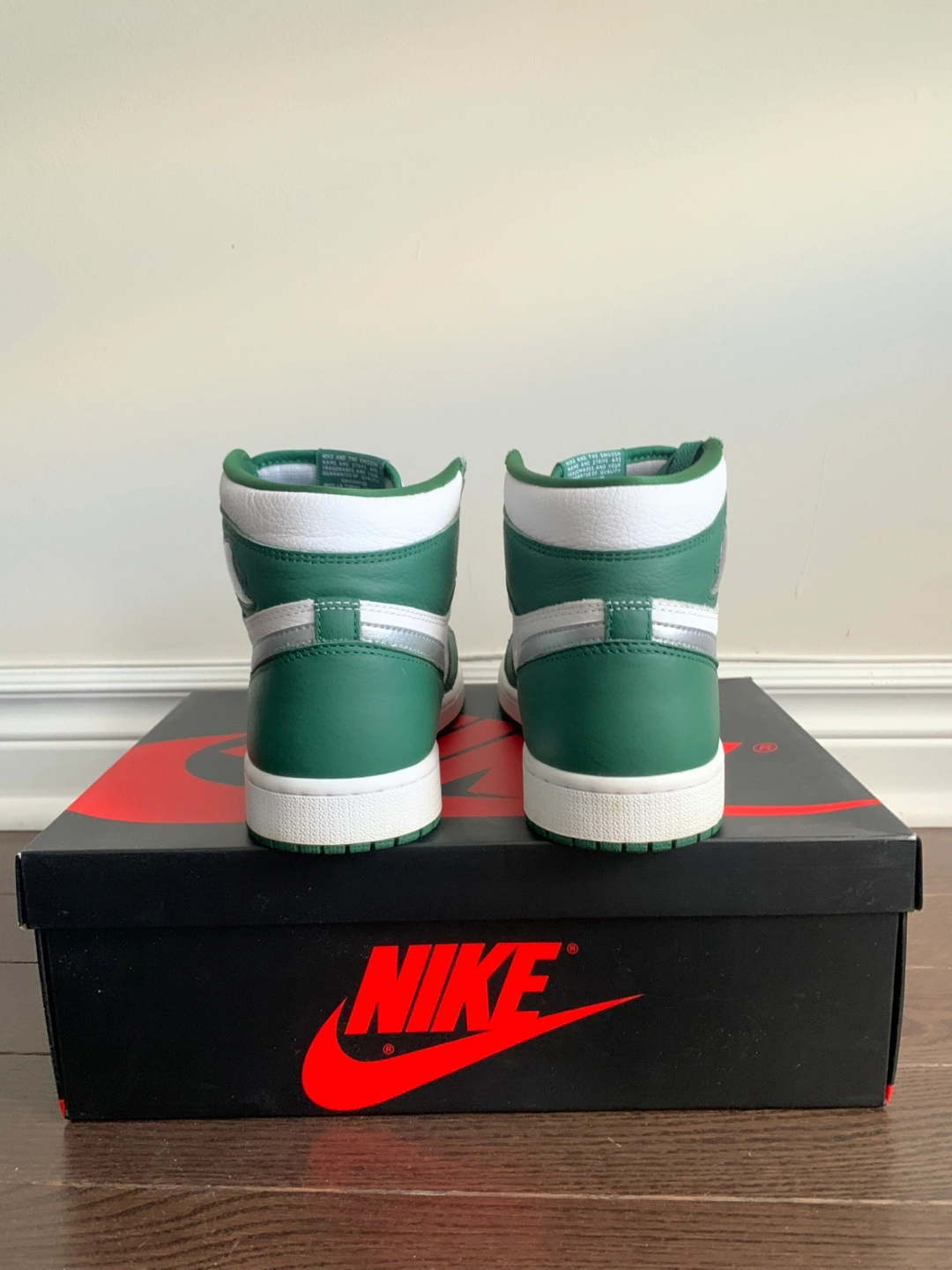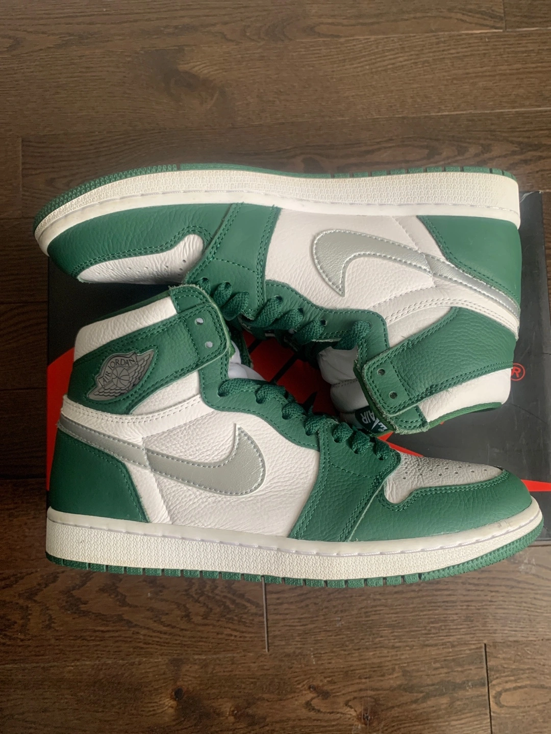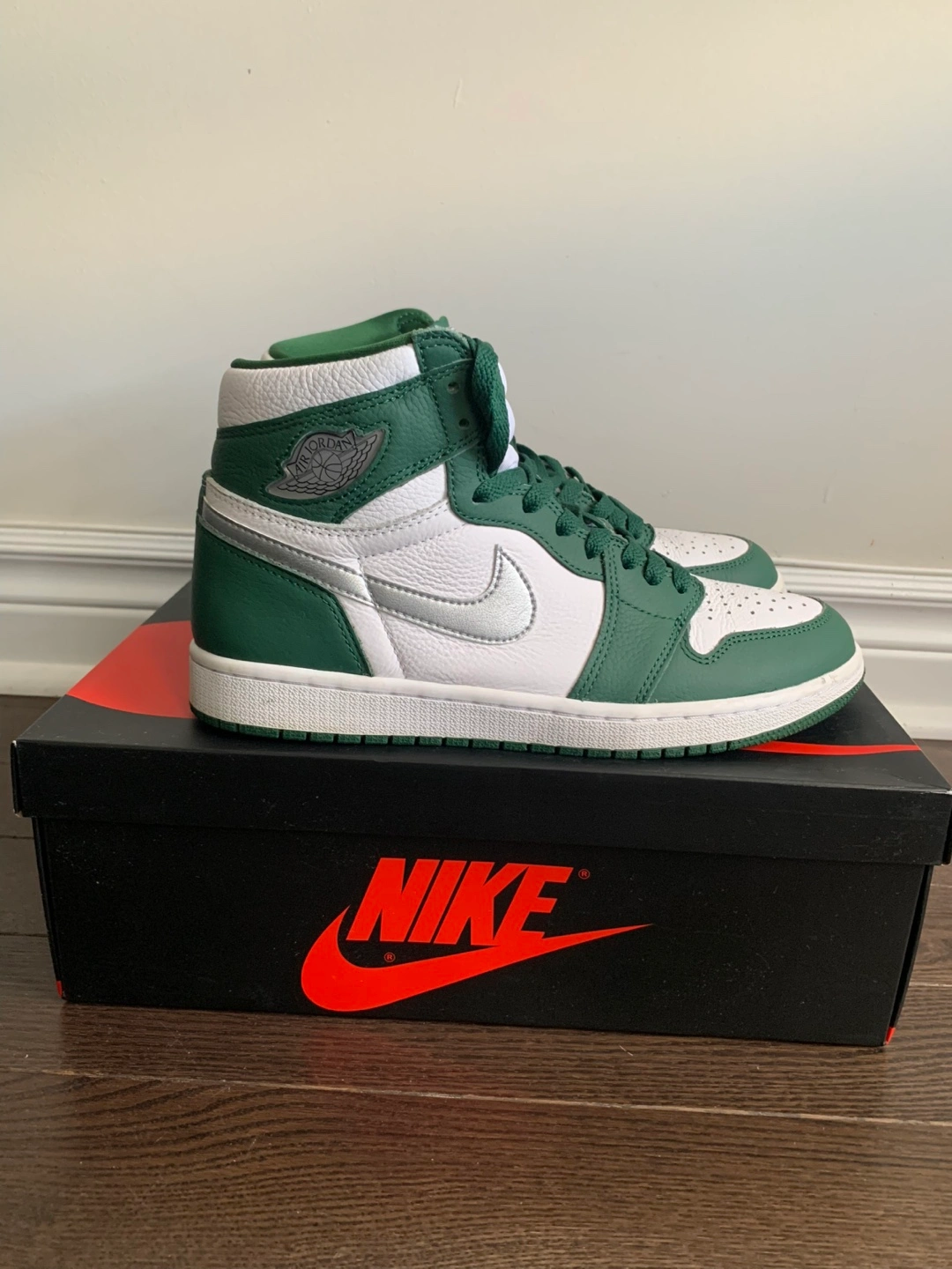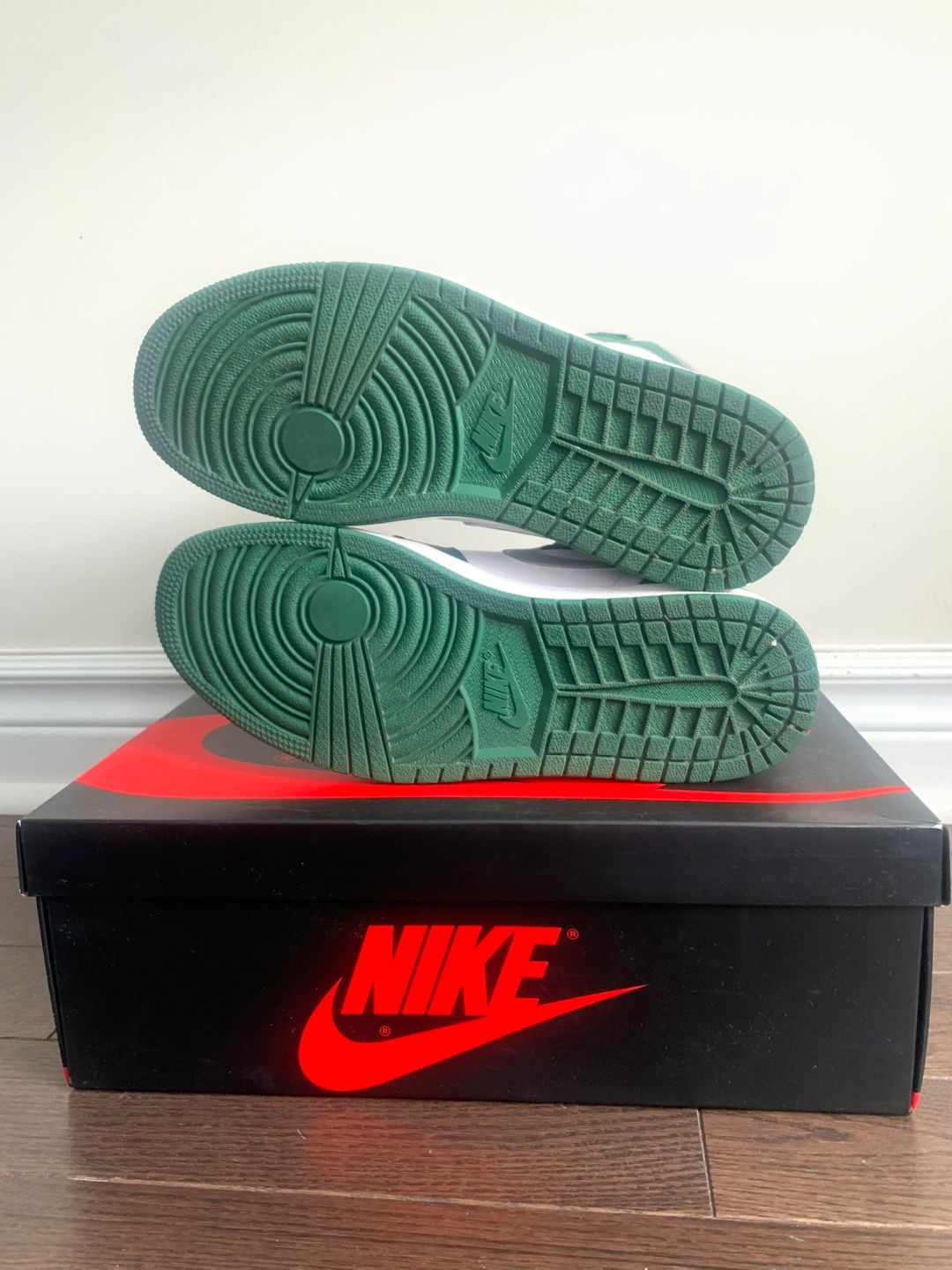 34Selling a pair of Nike Air Jordan 1 Retro High in the Lucky Green colourway. They come with the original box!
