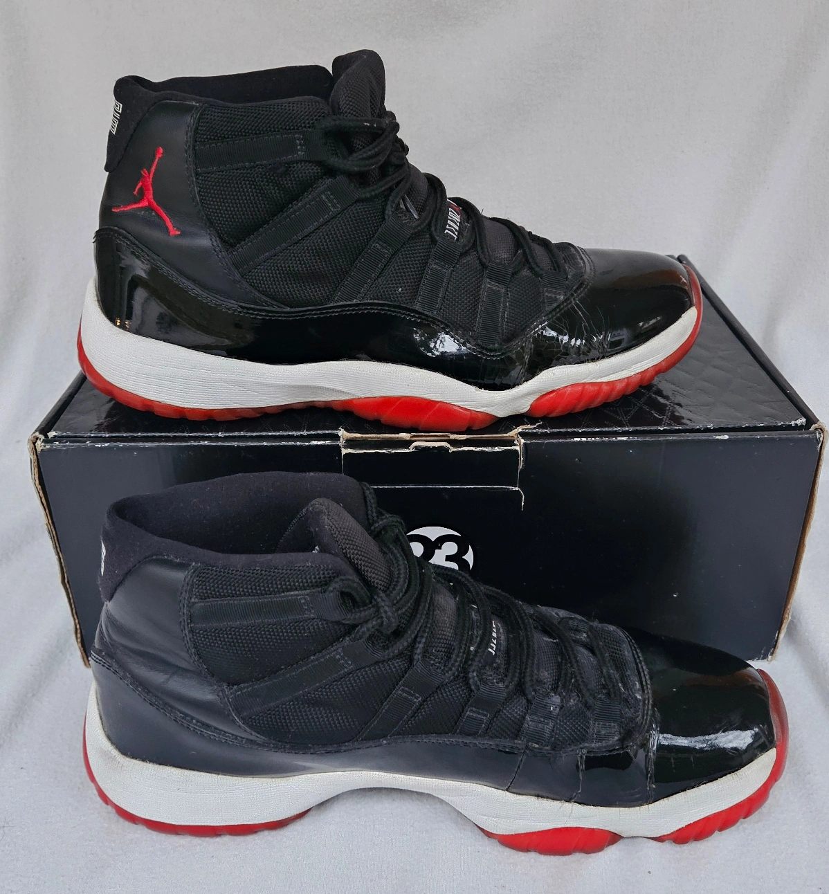 1000+Nike Air Jordan 11 X1 Retro Playoffs Bred Size 12 This pair of Nike Air Jordan 11, X1 Retro Playoffs Bred Size 12 are in excellent cond. There are no rips, tears, holes or stains of any kind. The interior and exterior of these Nike Air Jordan 11 X1 Retro are in excellent cond.