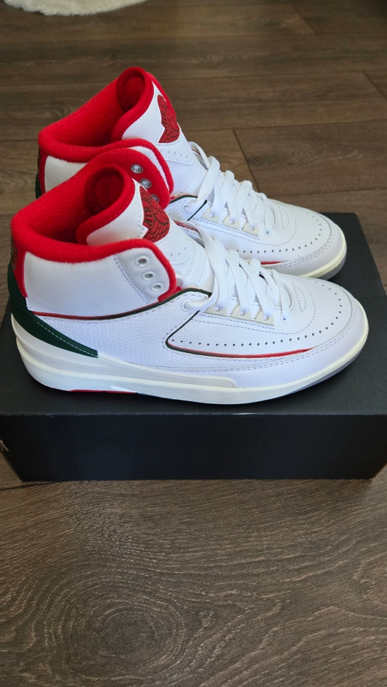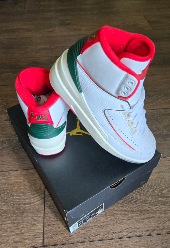 Selling a pair of Nike Air Jordan 2 Retro SE 'Olympic Pack' white and red trainers, US size 6 womens. The shoes are brand new and come with the original box. A stylish addition to any sneaker collection!