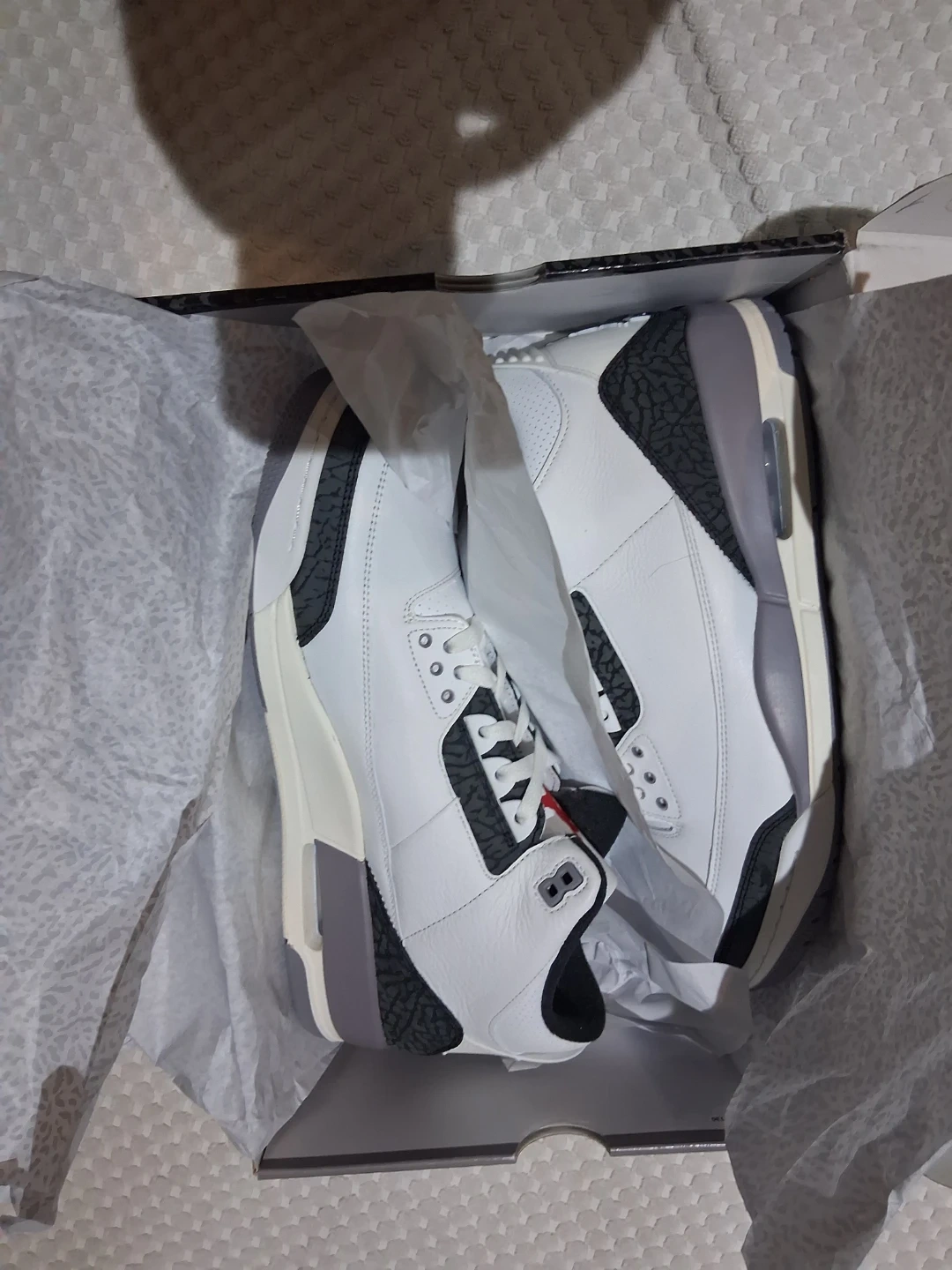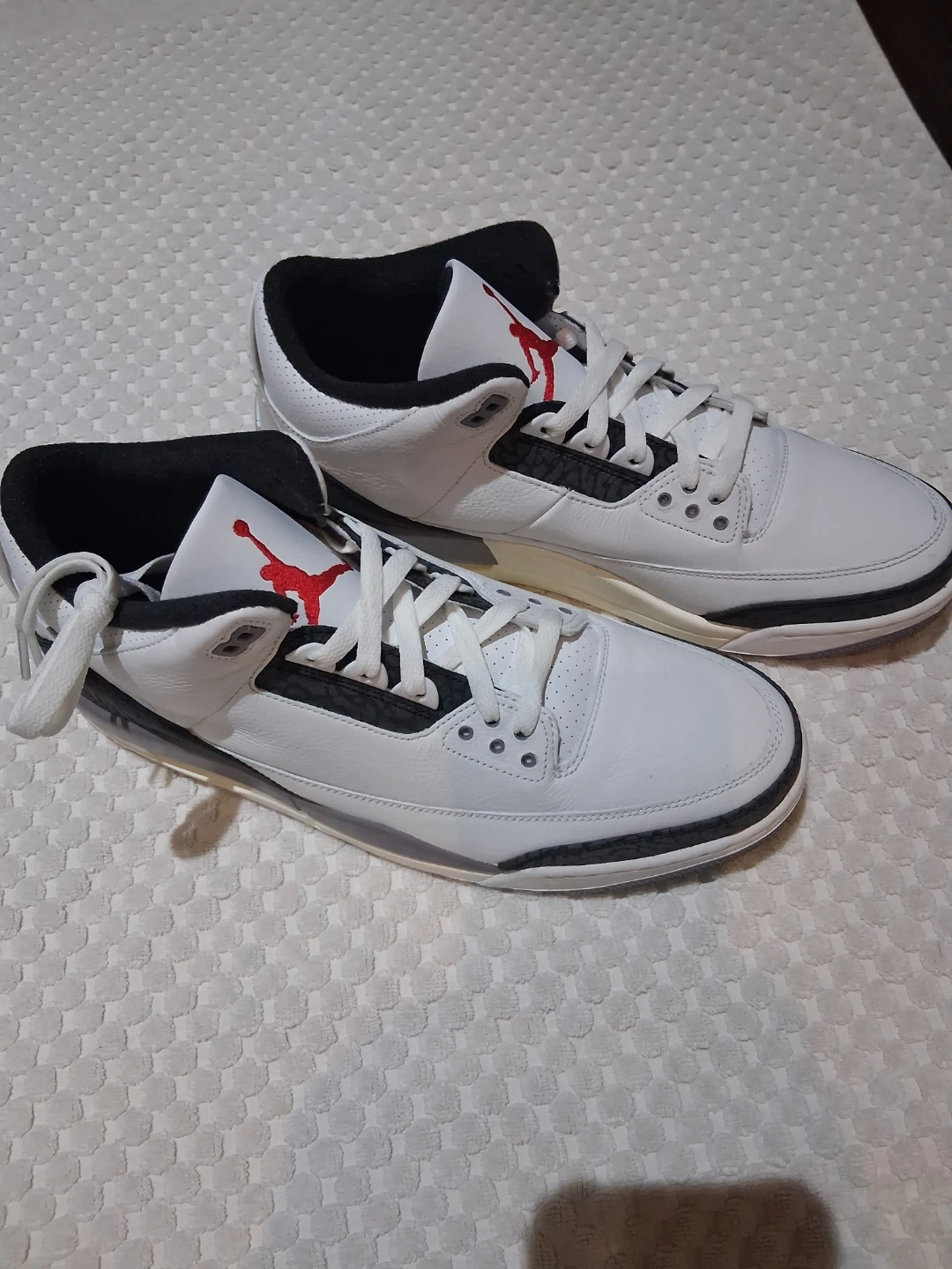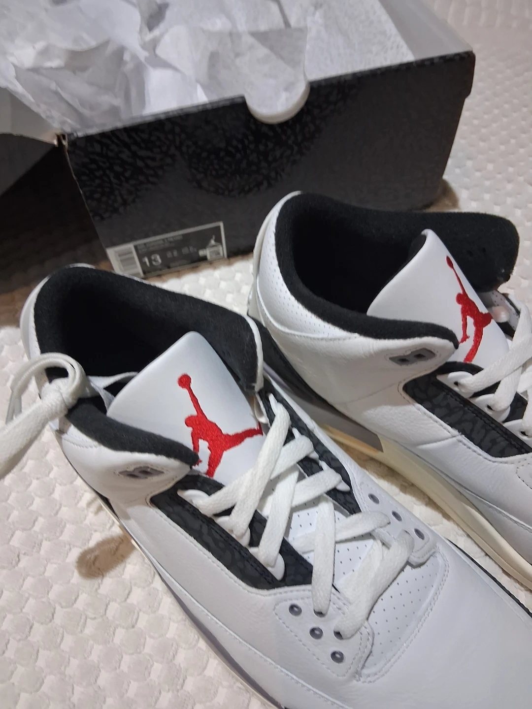 60Selling a pair of Nike Air Jordan 3 Retro in the classic White Summit/Fire Red colourway. These are in great condition and ready for a new home! Size 13. Can check Authenticity before exchange. QR Scan