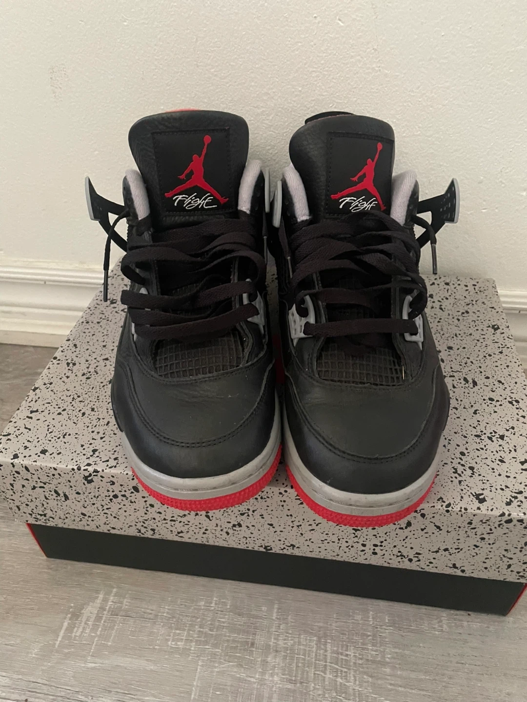 Selling a pair of Nike Air Jordan 4 Retro in the classic Bred colourway. These shoes are in great condition and come with the original box. A must-have for any sneakerhead! Price is negotiable