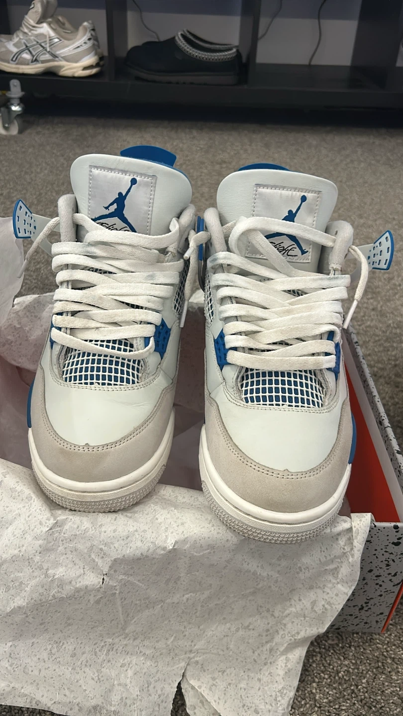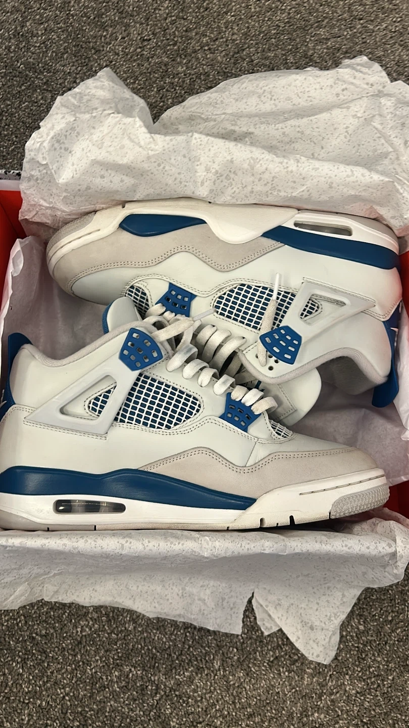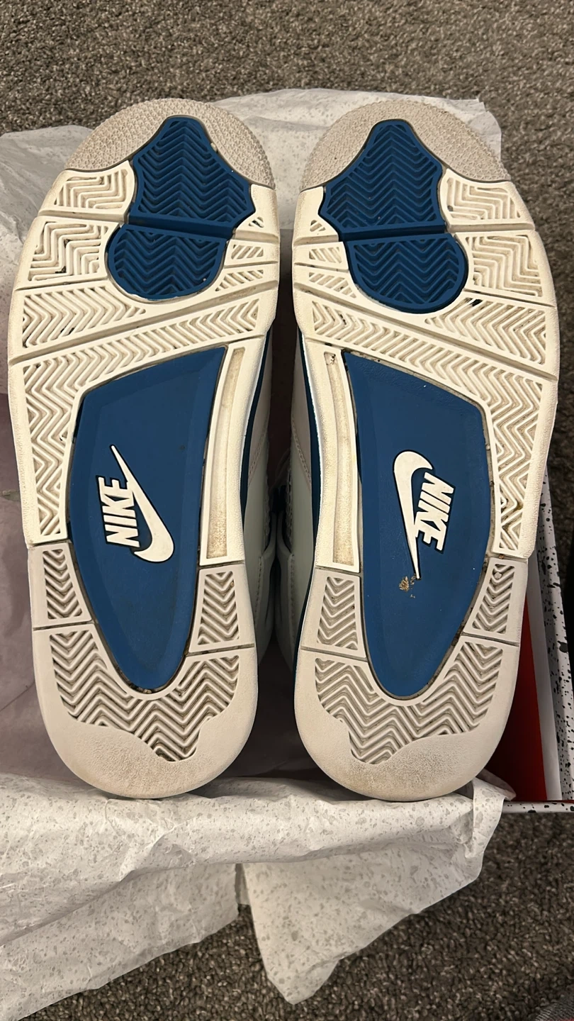 10Selling a pair of Nike Air Jordan 4 Retro in Off White and blue colour. These shoes are in great condition and come with the original box. Originally bought for $280.00