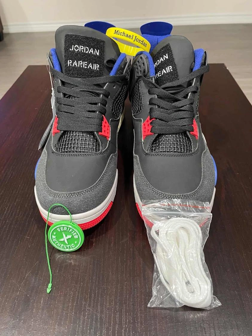 10Selling a pair of Nike Air Jordan 4 Retro Rare Air sneakers. Comes with extra laces, Michael Jordan wrist band and a Verified Authentic token.