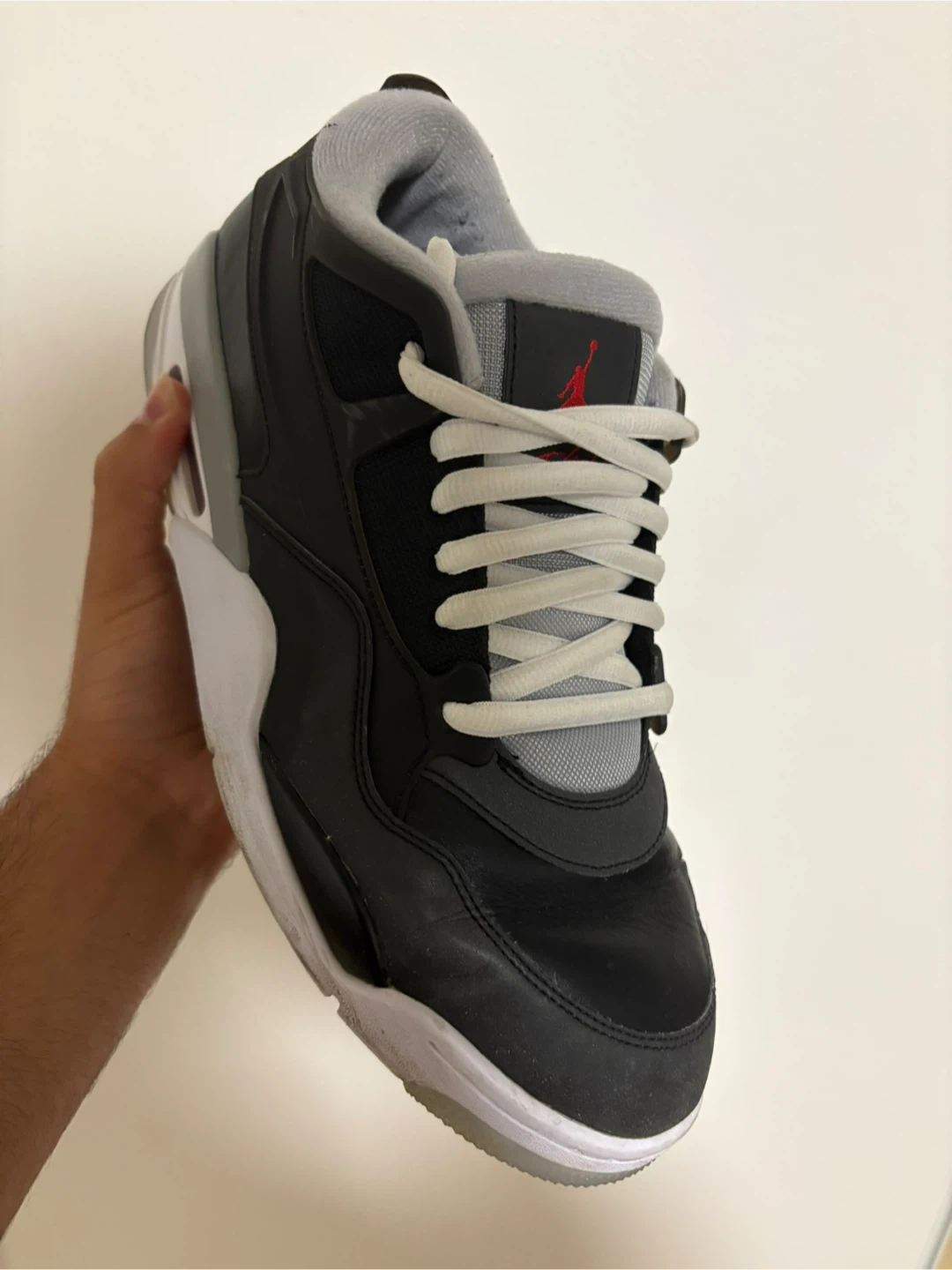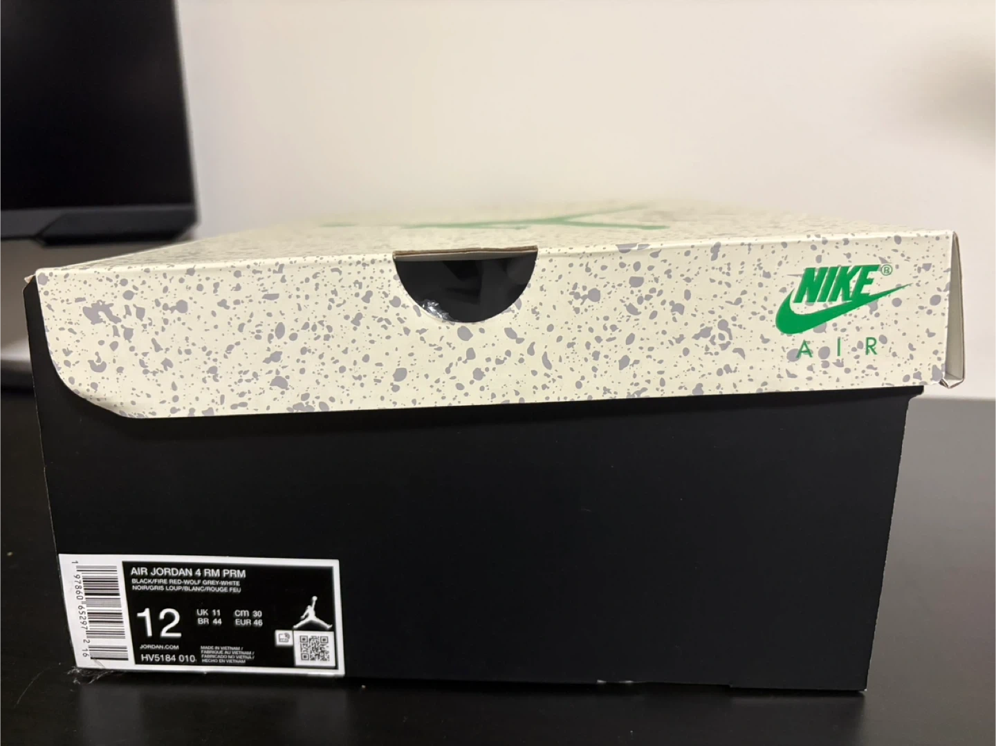 Selling a pair of Nike Air Jordan 4 RM PRM shoes in black and red! These are a size 12 and come with the original box. They're in great condition and ready for a new home