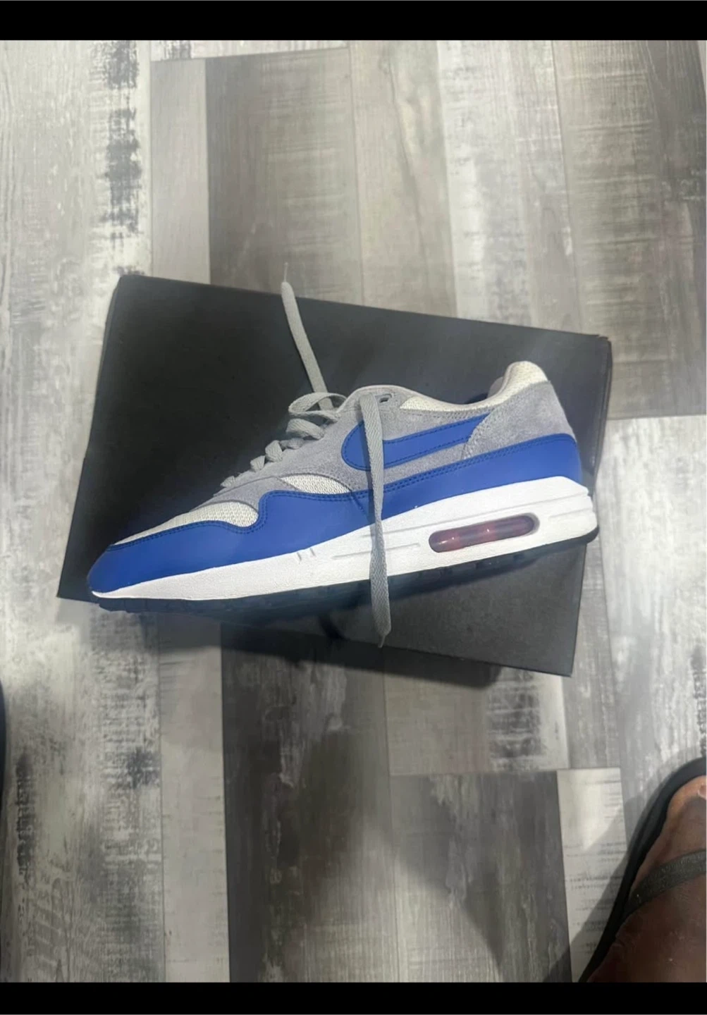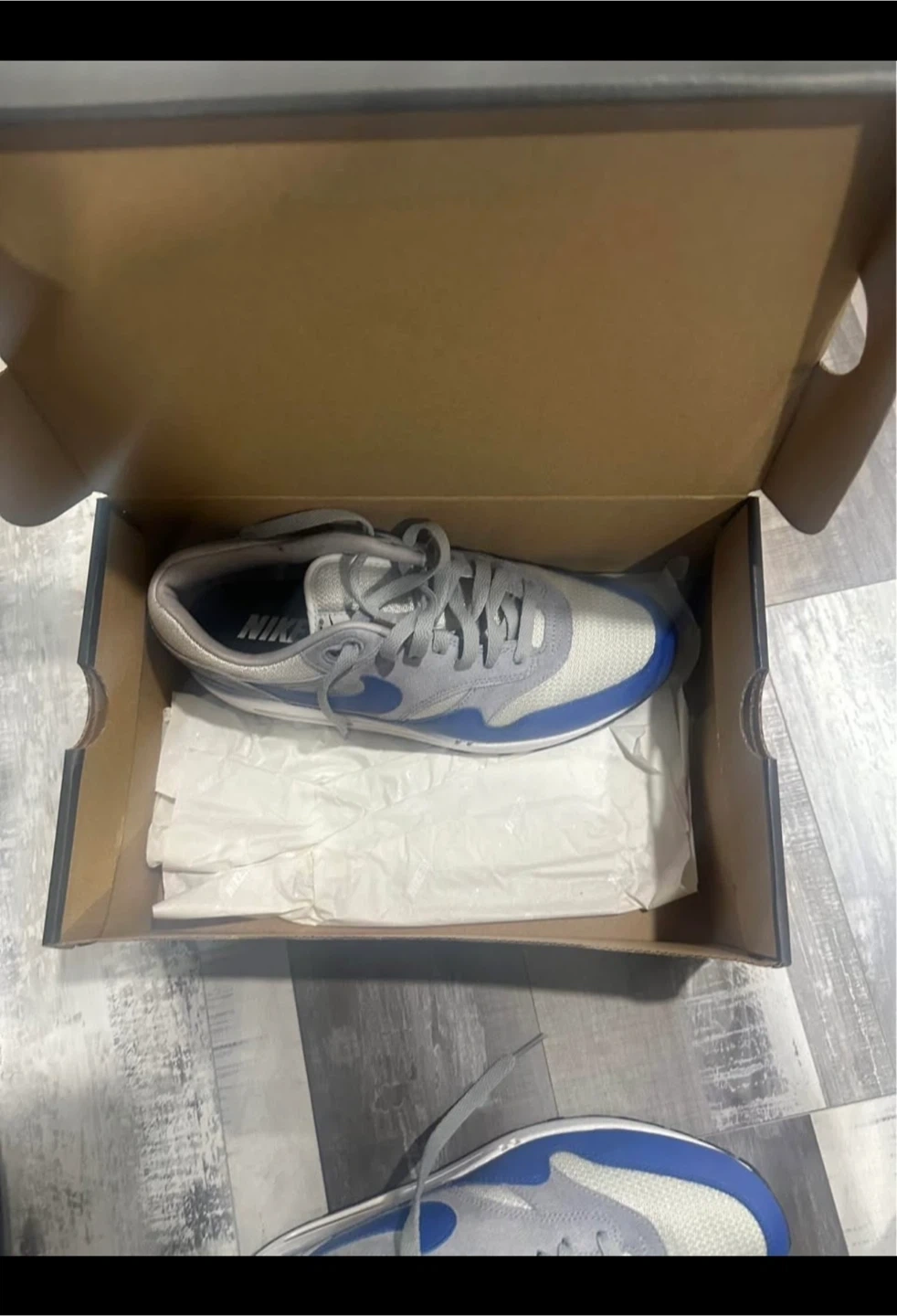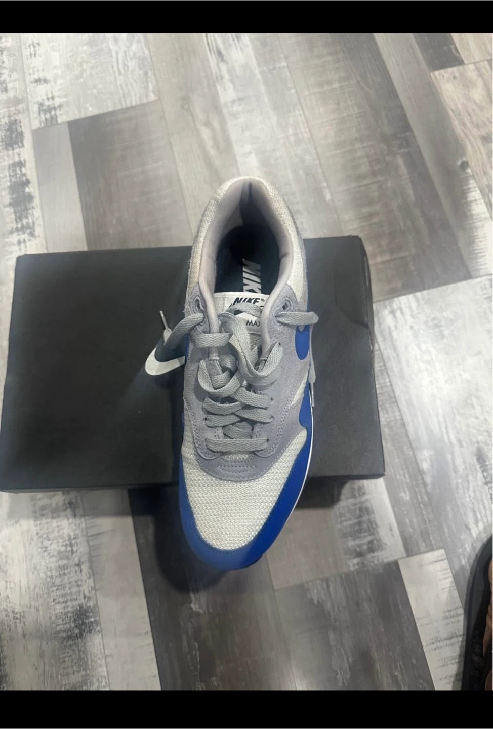 60Nike Air Max 1 in a stylish grey and blue colourway, size 9Comes with the original box!