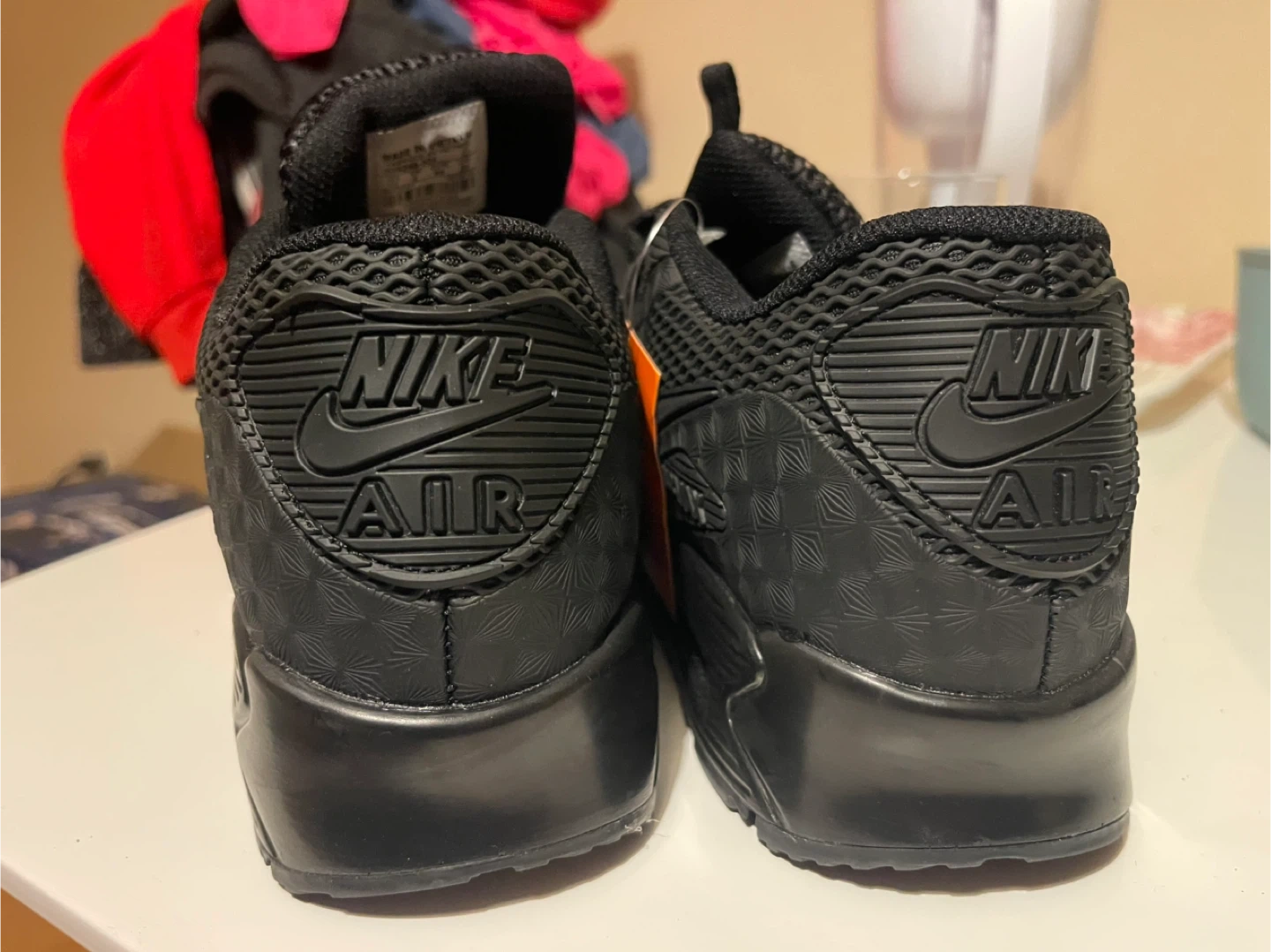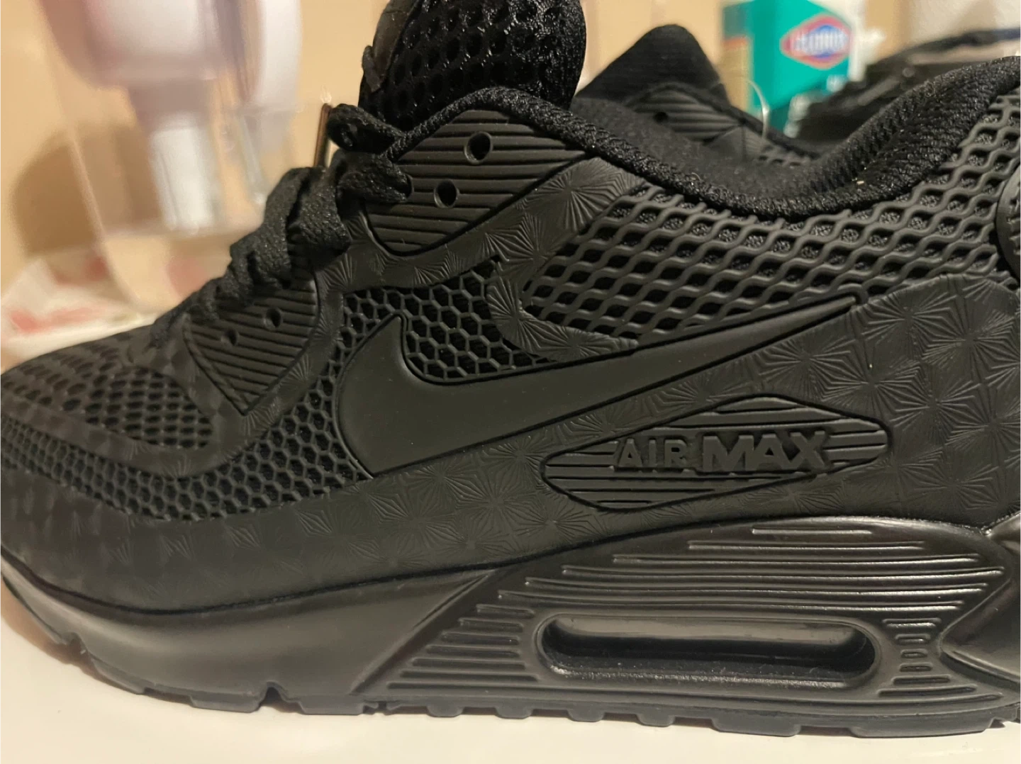 27these Nike Air Max 90s, designed with a sleek, all-black aesthetic. These shoes are a size 10 perfect for everyday wear or hitting the gym. The classic Air Max cushioning provides exceptional comfort and support. Key Features: * Brand: Nike * Model: Air Max 90 * Colour: Black * Size: 10 * Condition new