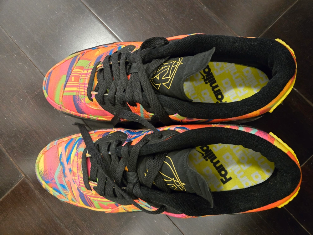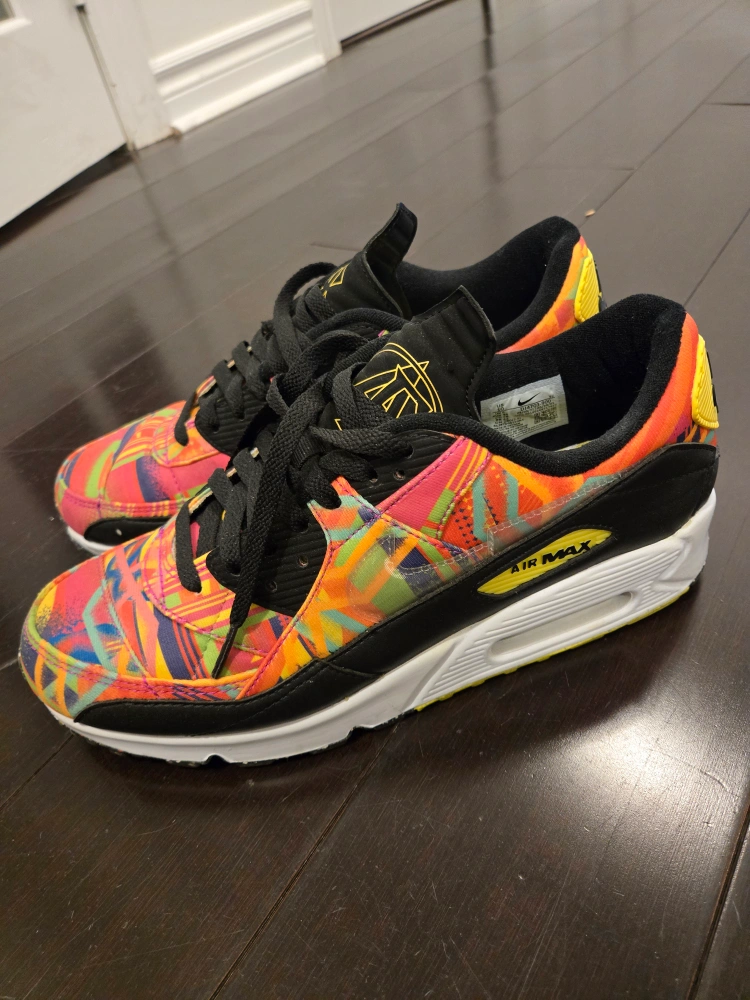 192Nike Air Max 90 'Familia' in size 10. Multicoloured upper with black accents. White midsole with black outsole. Absolutely pristine condition, worn only ONCE indoors. Amazing style, colour and comfort. Please message if interested, thank you.
