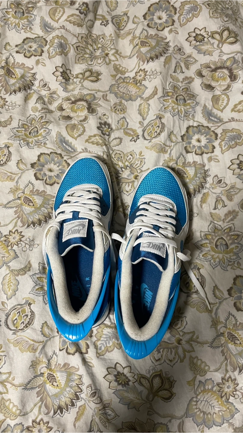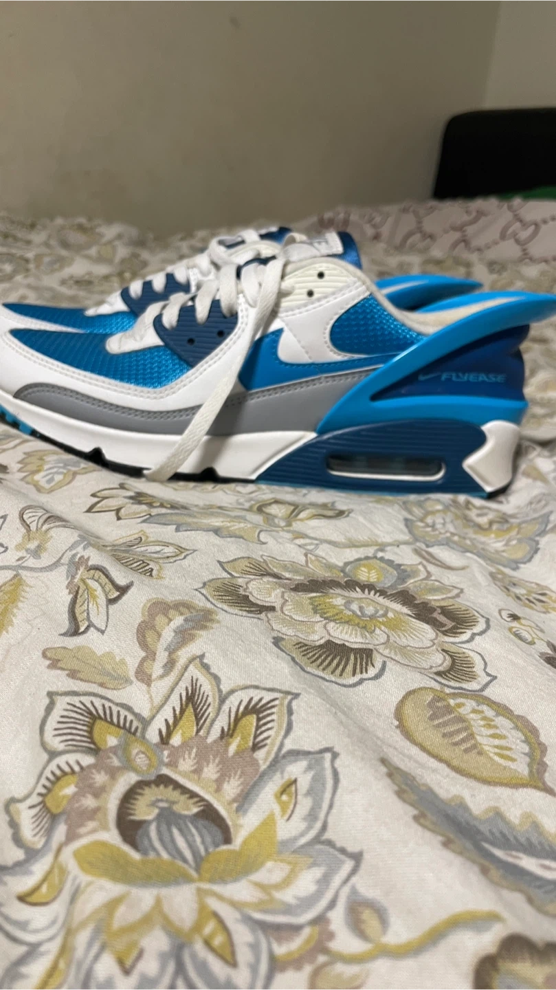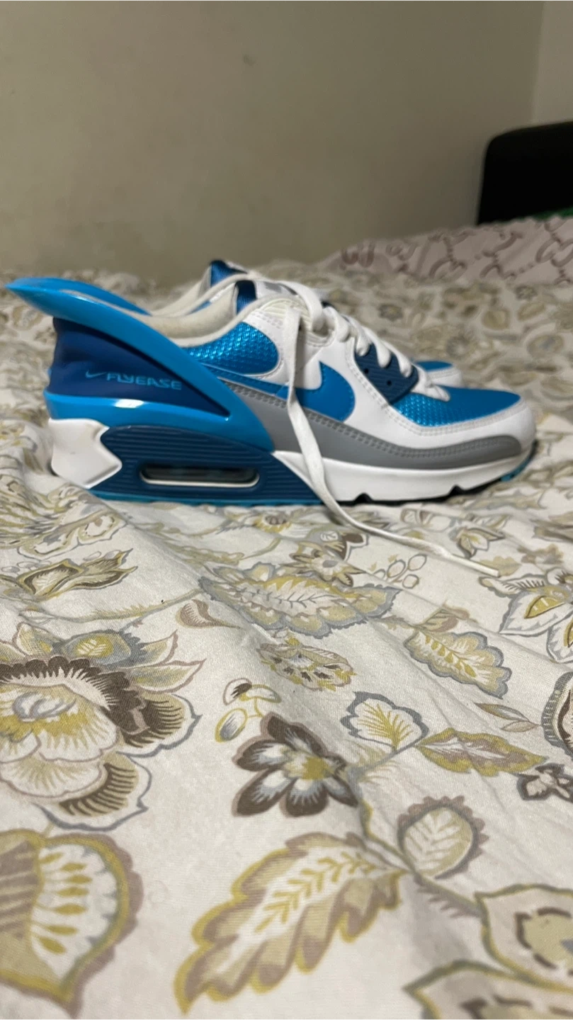 45Selling a pair of Nike Air Max 90 FlyEase sneakers in a cool blue and white colourway. They're in great condition and ready for a new home. These shoes combine the classic Air Max 90 style with the innovative FlyEase technology, making them super easy to slip on and off. Perfect for everyday wear! They are Size 9. able to negotiate for price