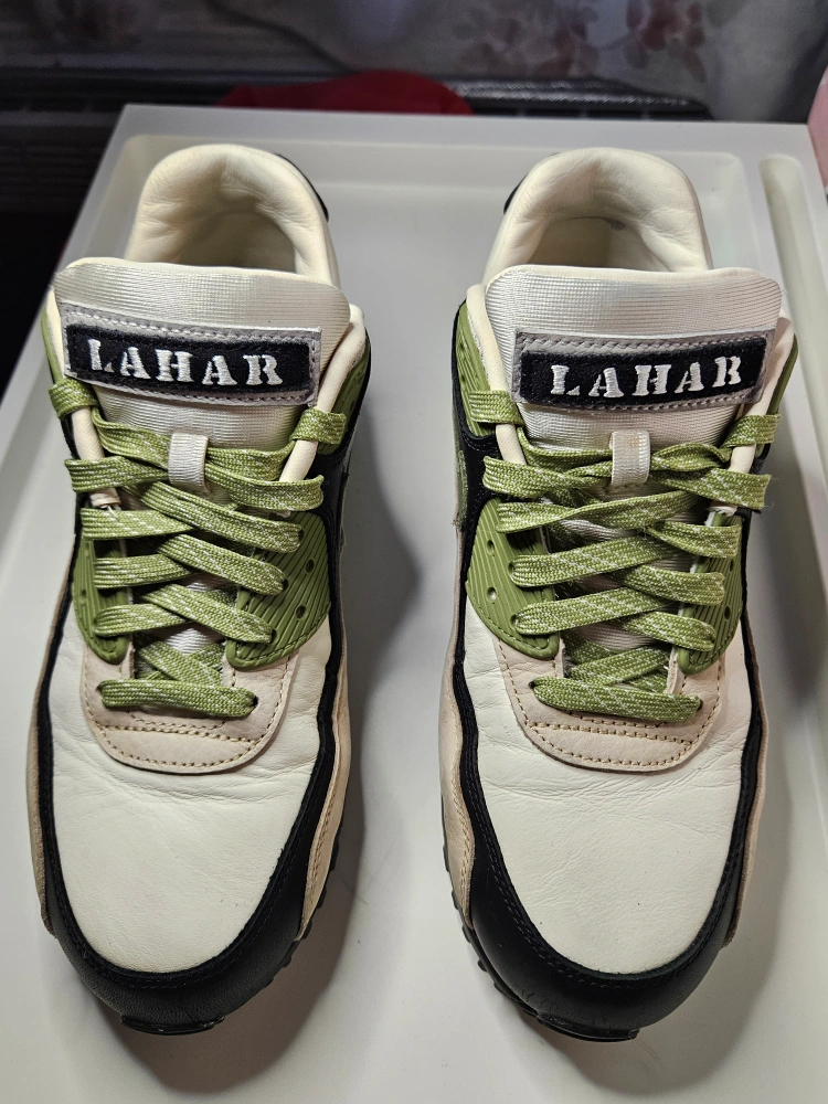 115These Nike Air Max 90 Lahar Escape shoes are in good condition and ready for a new home! They feature a unique design with green accents and the 'Lahar' branding on the tongue. Perfect for adding a touch of style to your everyday look!