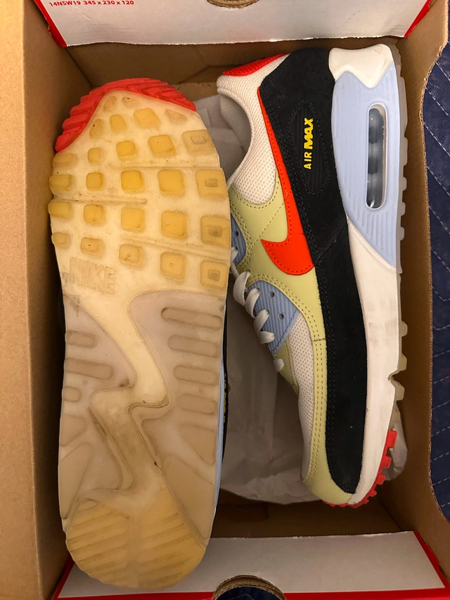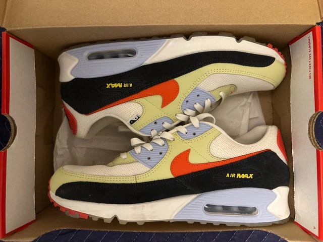 Nike Air Max 90 - Lemon Drop / Team Orange-Sail Size 12. Like new. Comes with box. Price is firm. Part of a private collection sale. If listing is up, item is available.