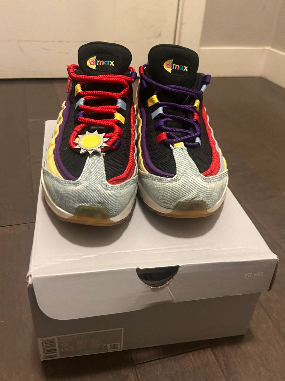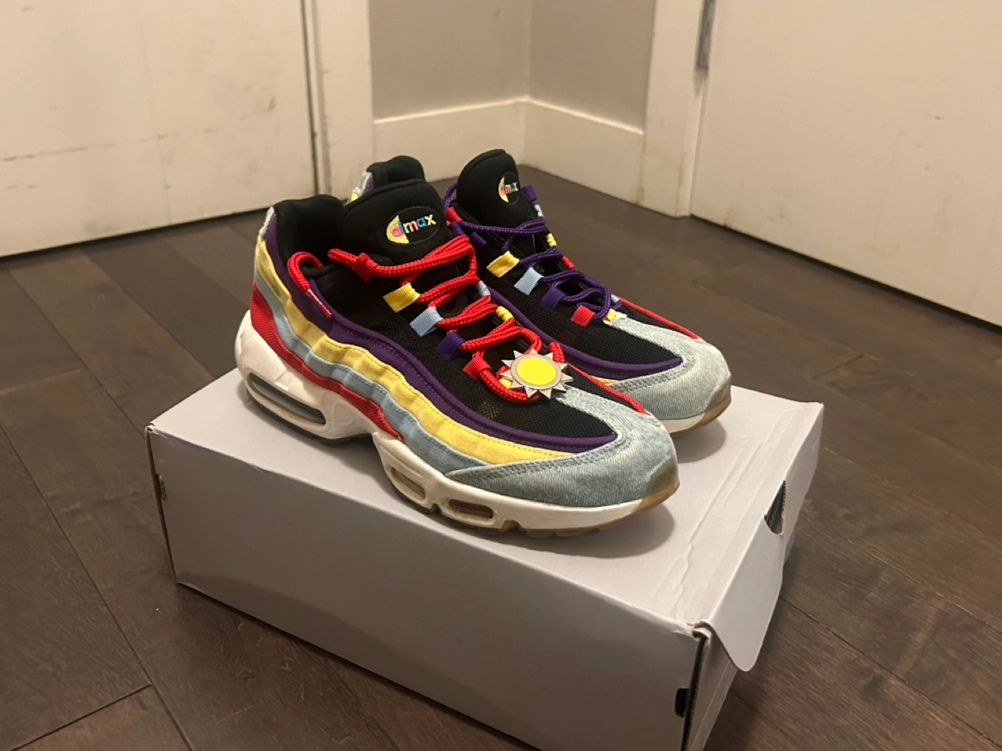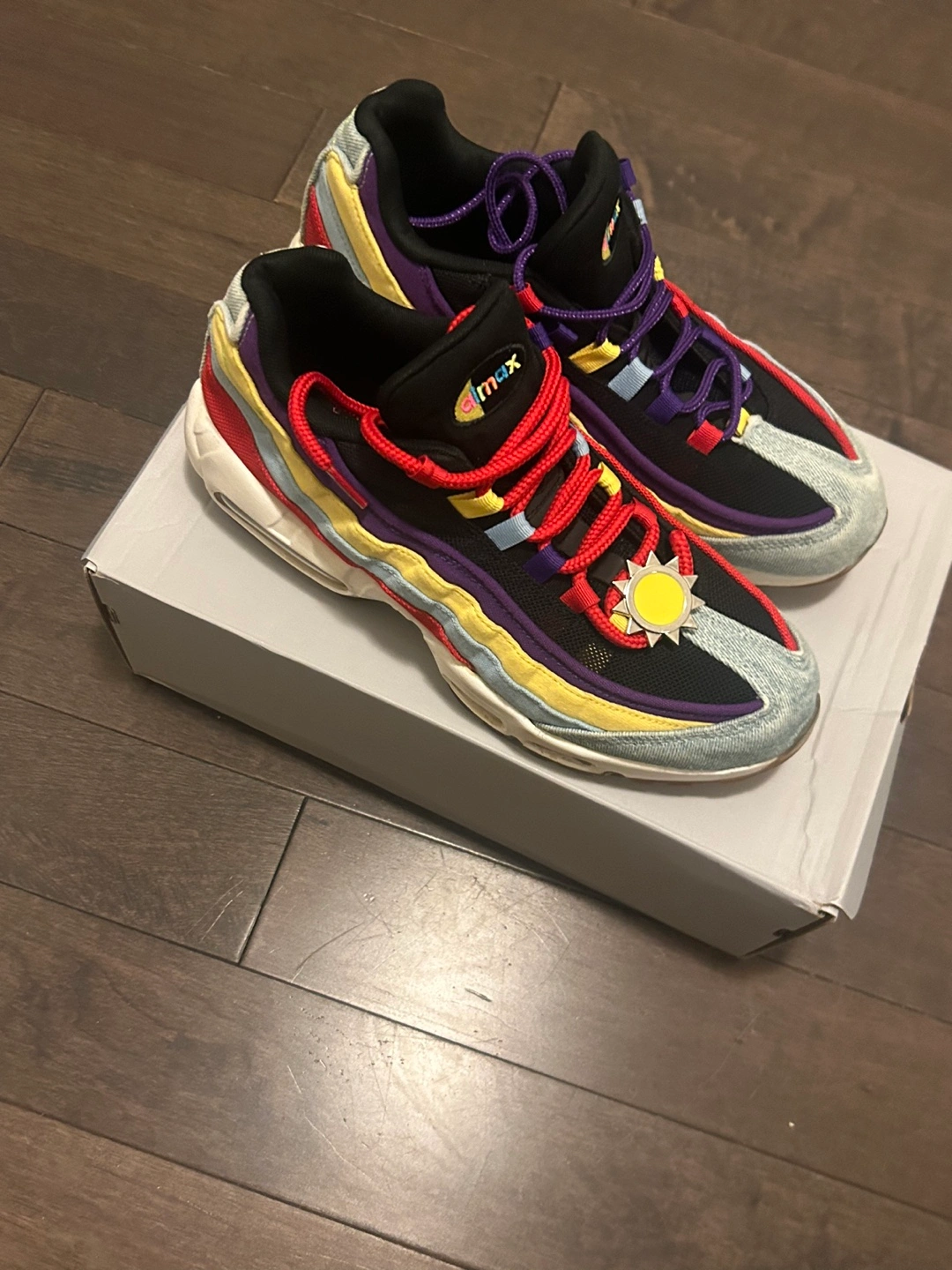 79Selling a pair of Nike Air Max 95s in size 10.5 They come with the original box! The shoes feature a unique and colourful design. Great for adding a pop of colour to your wardrobe. Don't miss out!