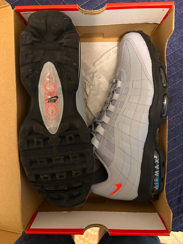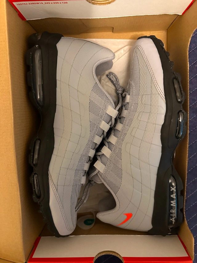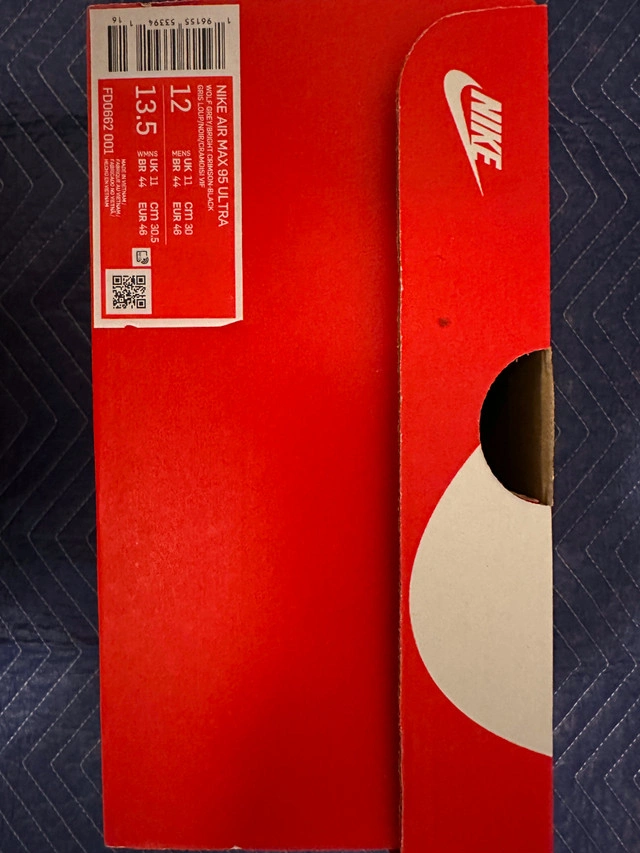 Nike Air Max 95 Ultra - Wolf Grey / Bright Crimson-Black Size 12, comes with box. Price is firm. Like new, worn once. Part of a private collection sale. If listing is up, item is available.