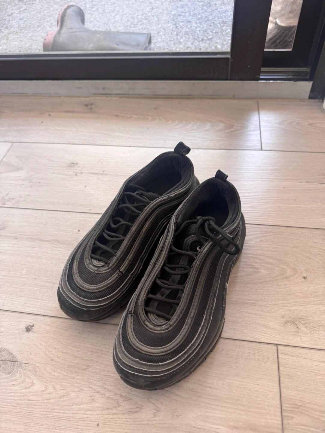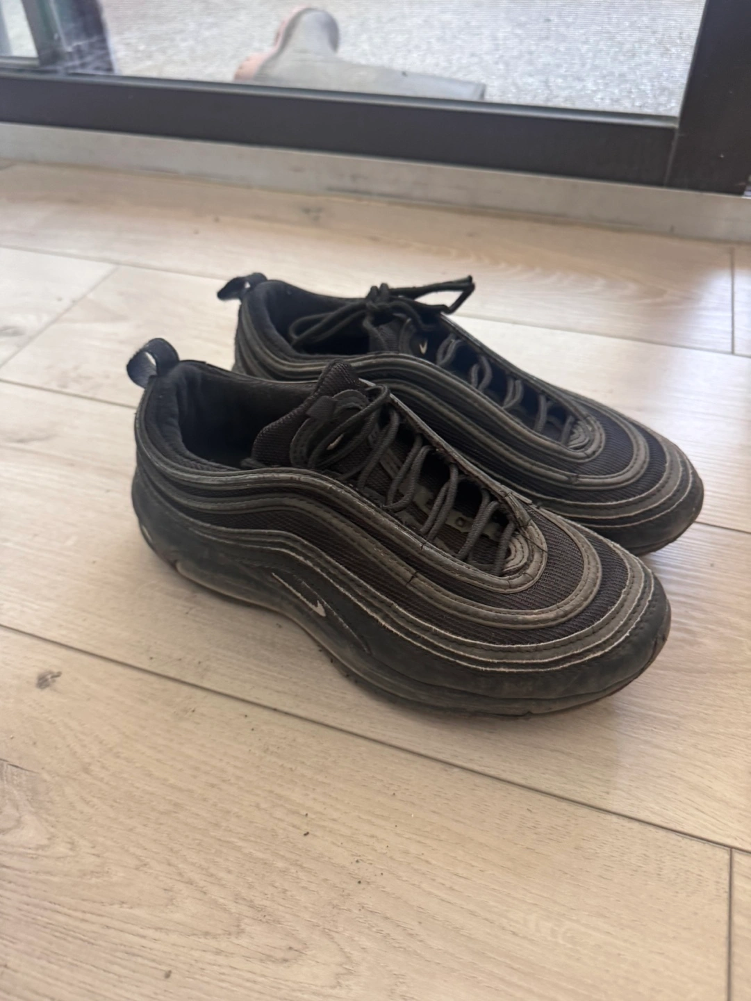17Selling a pair of Nike Air Max 97 in black, size 9.5. They're in good condition and ready for a new home! Great for everyday wear or hitting the gym
