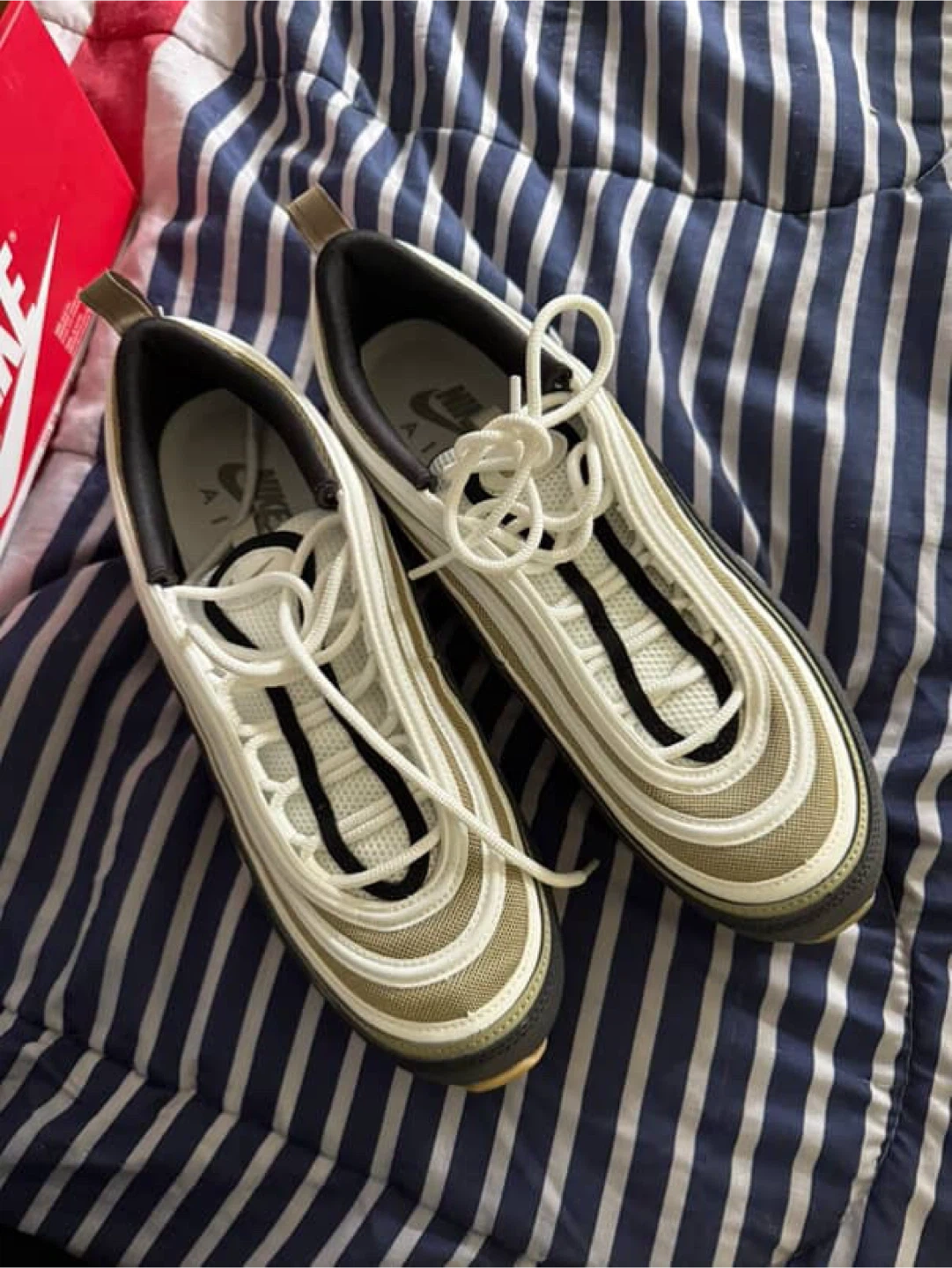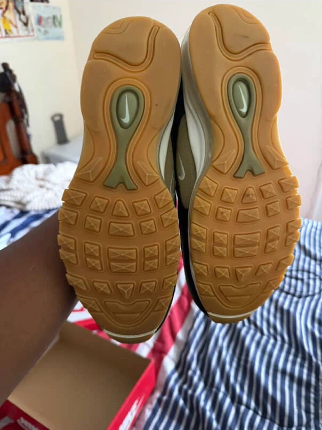 10Selling a pair of Nike Air Max 97s in an olive green and black colourway. They're in great condition and come with the original box! Size is 10.5 US