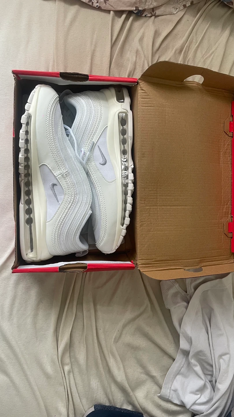 60Selling a pair of Nike Air Max 97 sneakers in white. They come with the original box! These are a stylish and comfortable choice for everyday wear.