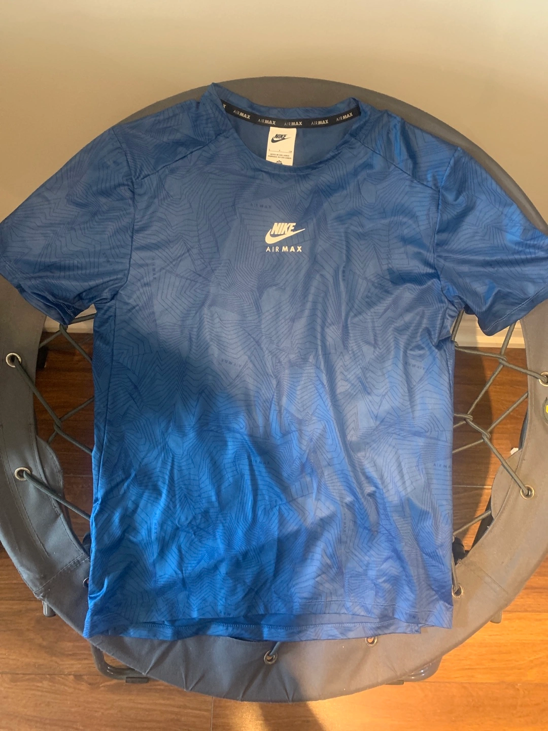 Selling a Nike Air Max t-shirt in blue. It's a size small and in great condition. Wore it once it’s pretty much new. Open to offers. Contact for more info.