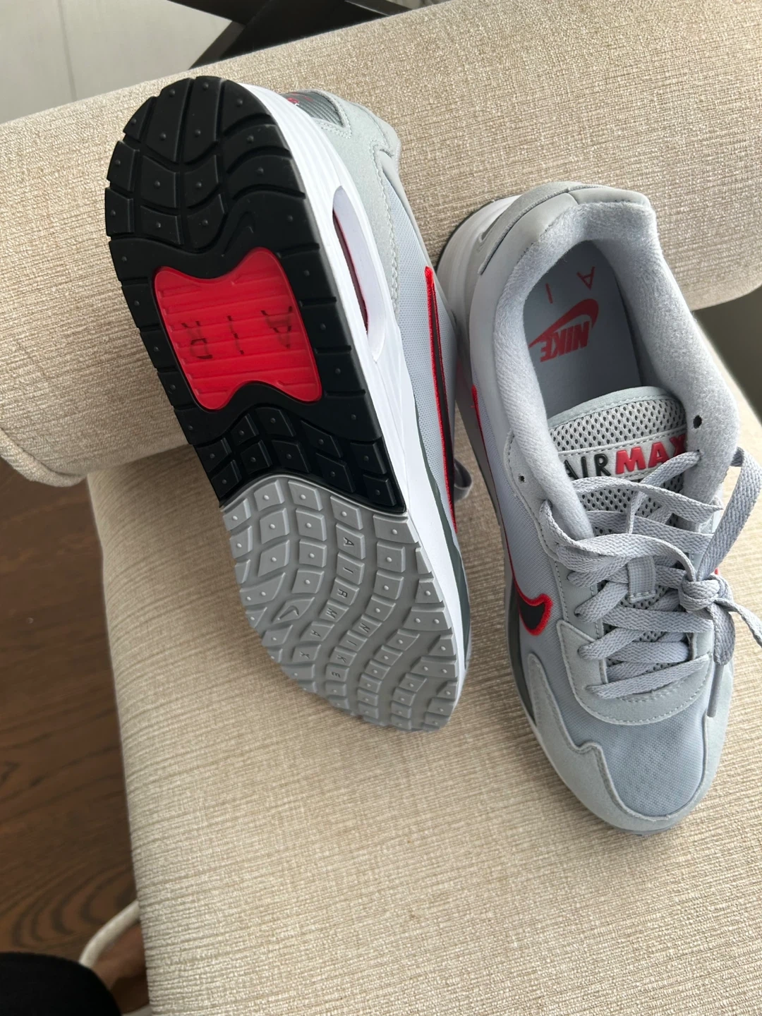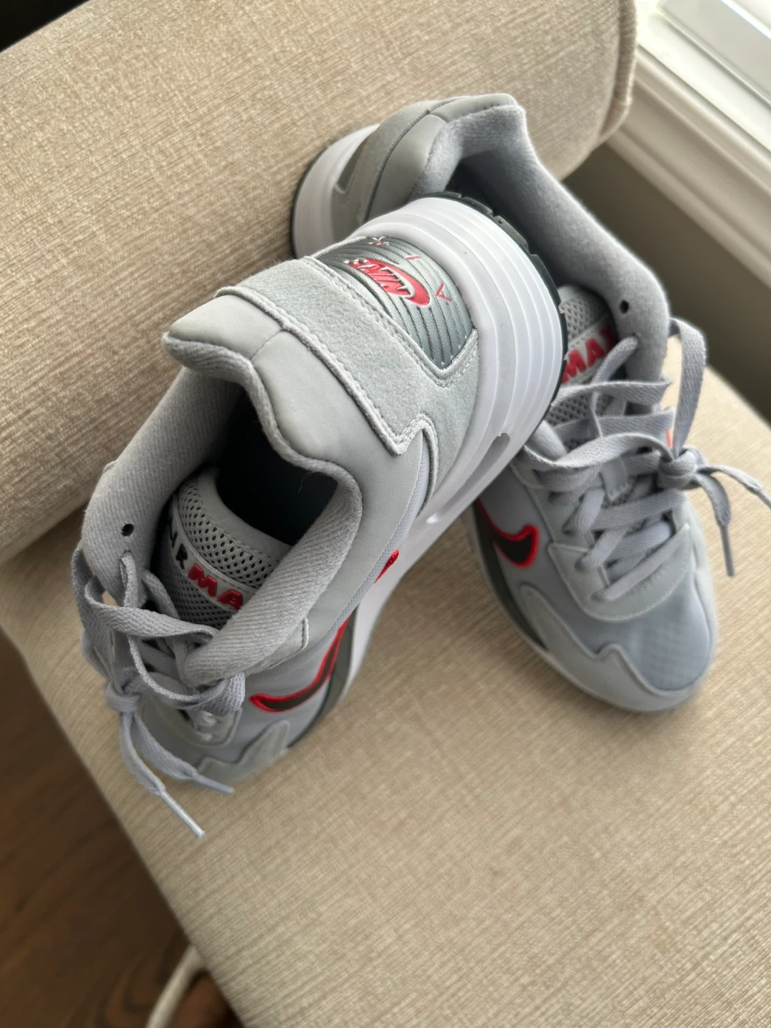 10Selling men’s AirMax sneakers in grey with red and black Nike swoosh . New.