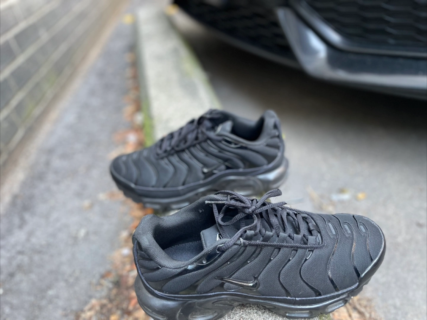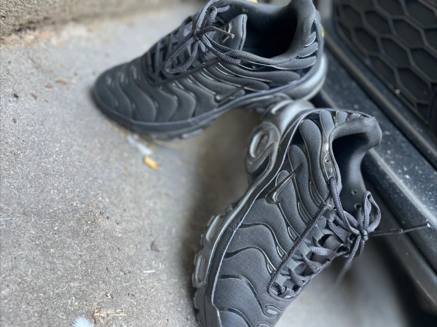 62These Nike Air Max Plus TN sneakers are a sleek addition to any wardrobe. They're in great condition and ready for a new home. The all-black colourway gives them a versatile look that can be dressed up or down. If you're looking for a stylish and comfortable pair of sneakers, these are a great choice!
