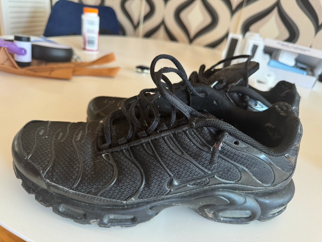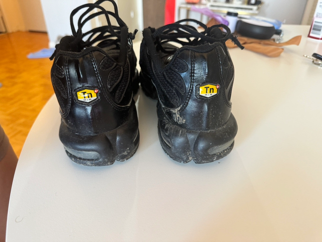 327Black Nike Air Max Plus TN running shoes. They are a size 10.5men's. DM ME , lets work something out !