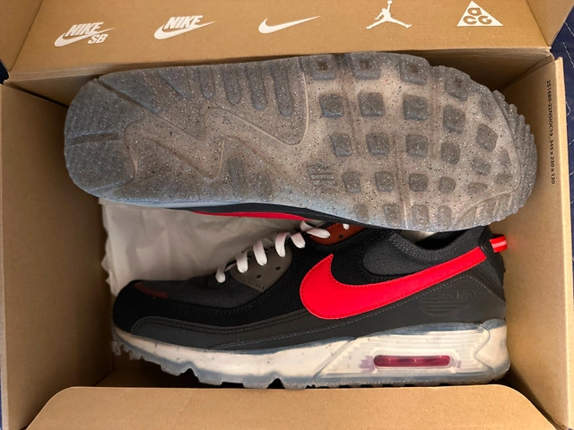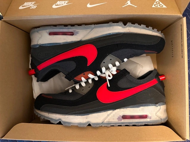 Nike Air Max Terrascape 90 - Anthracite Black / University Red Size 12. Like new, worn once. Price is firm. Part of a private collection sale. If listing is up, item is available.