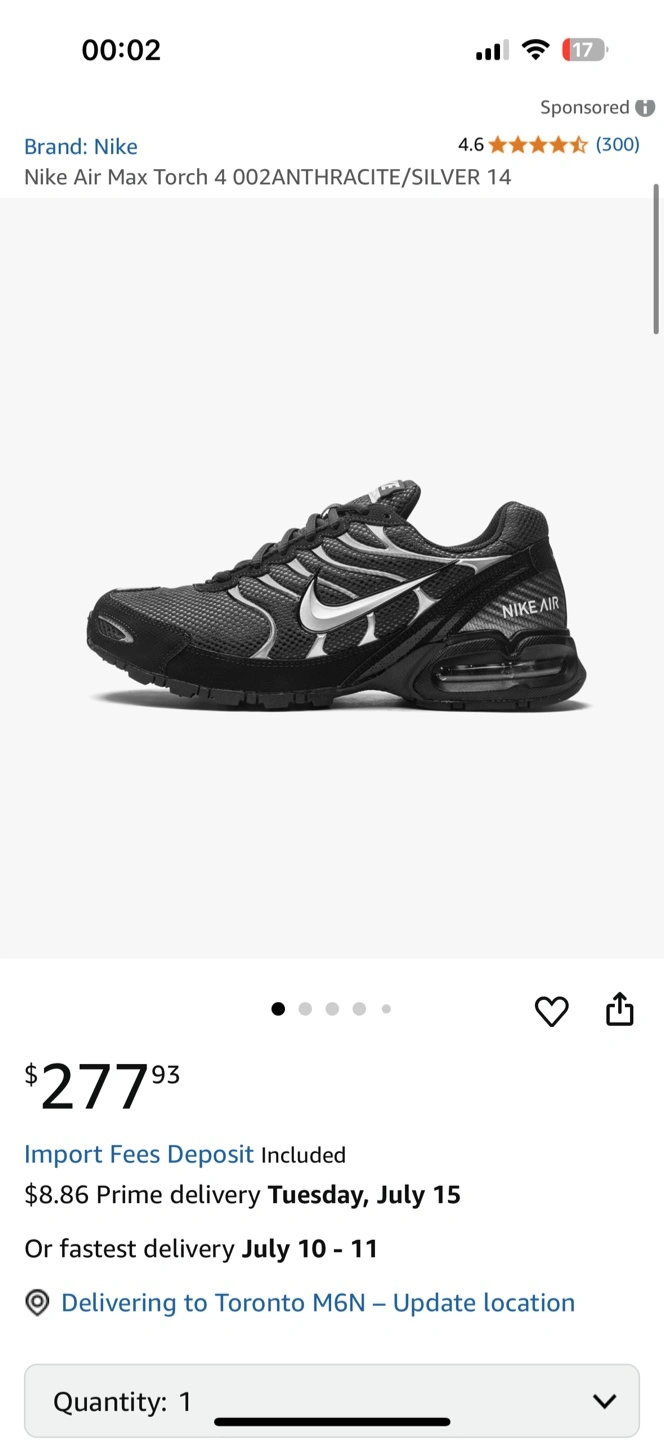 Selling a pair of Nike Air Max Torch 4 sneakers in size 12.5. They're in brand new condition and come with the box. These shoes feature a stylish anthracite/silver colourway.
