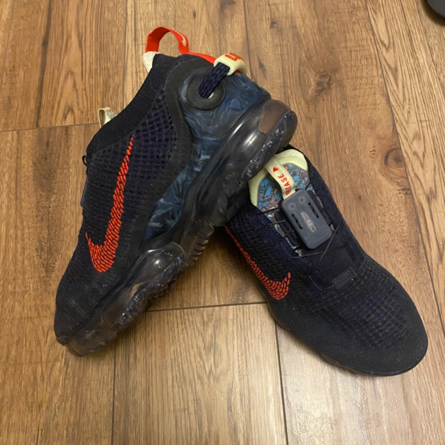 60Nearly new pair of Nike Air Vapormax Flyknit 2020, featuring the bold Obsidian Blue upper with Siren Red and Volt accents. Lightweight, breathable Flyknit design with the Vapormax full-length Air sole for ultimate comfort and style.
