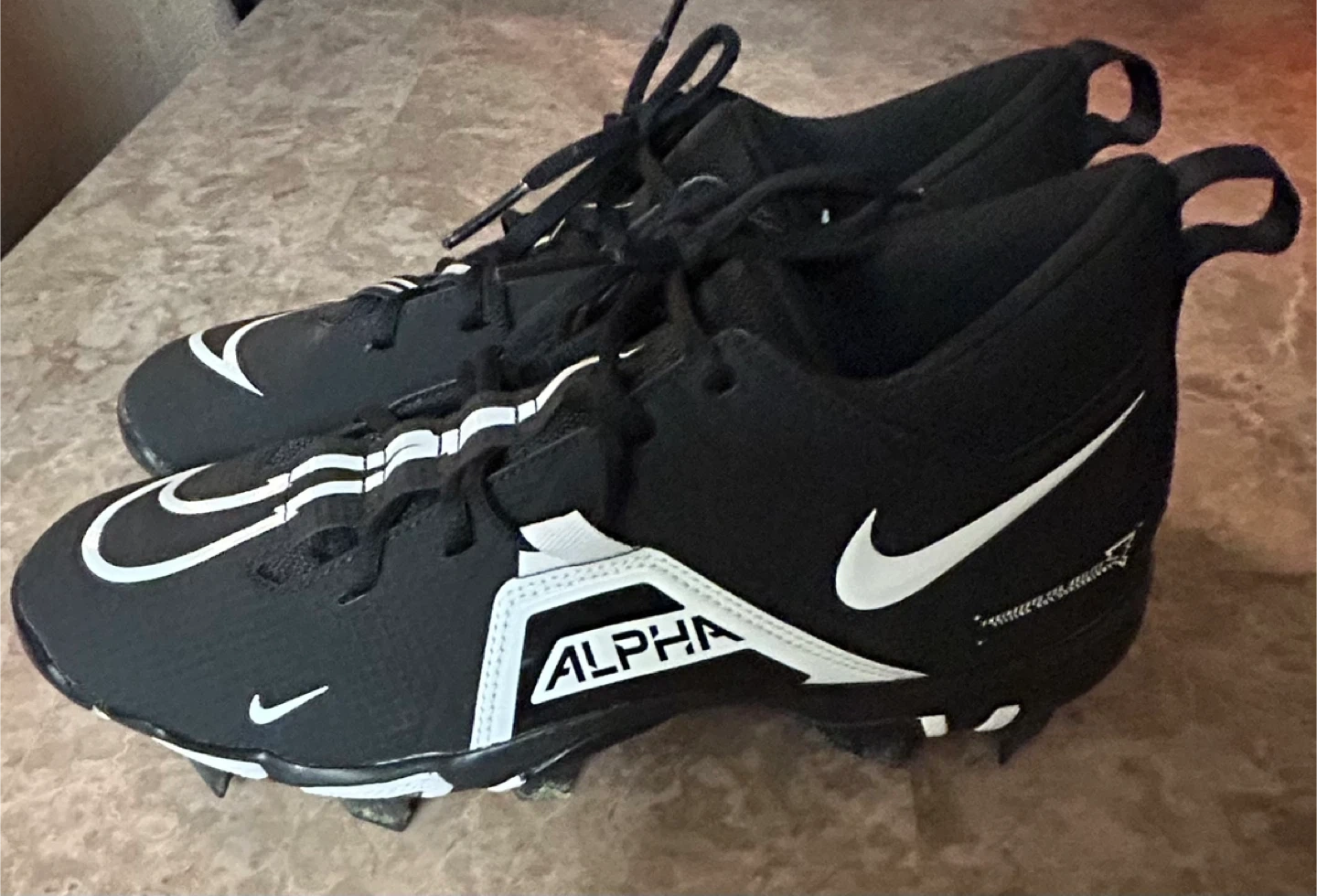 12Selling a pair of Nike Alpha football cleats in black. They show some signs of use, especially on the soles, but still have lots of life left for the field. A great choice for your next game!