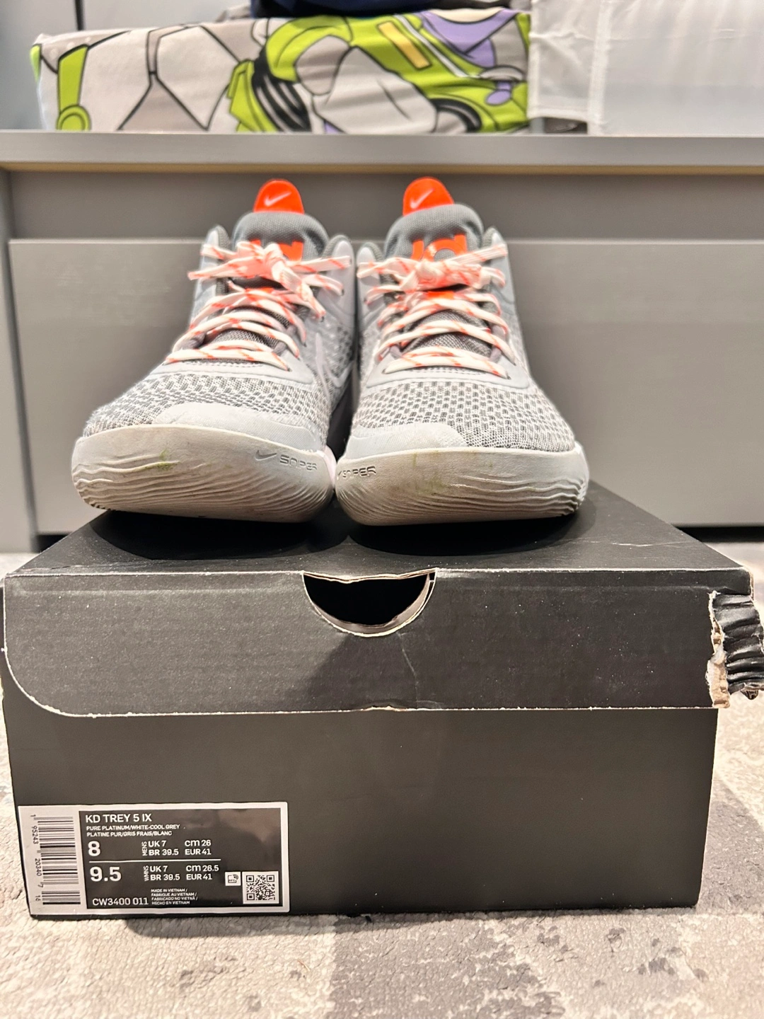 Selling a pair of Nike KD Trey 5 IX basketball shoes in pure platinum! They're in great condition and come with the original box. The shoes are only worn once with minimal wear. Size is 8 US Men’s