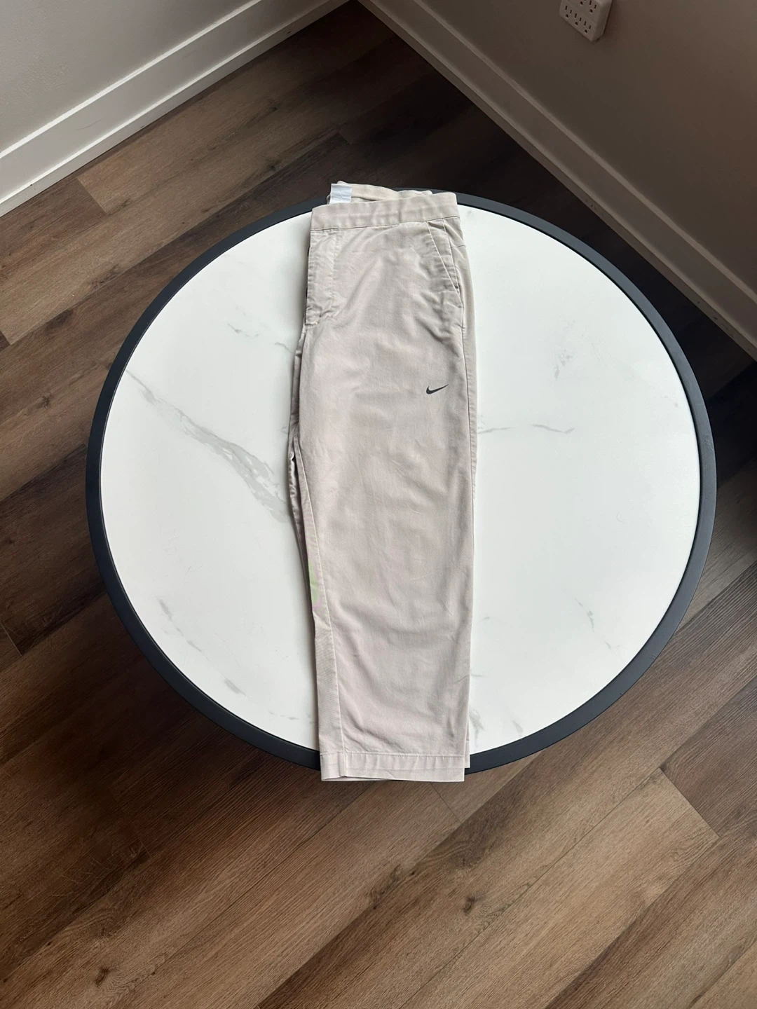 Selling a pair of beige Nike pants! They're in great condition and ready for a new home. Perfect for everyday wear or dressing up a bit