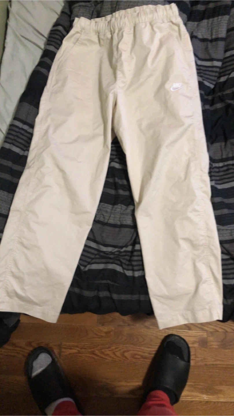 Here are some beige Nike pants in size medium. They're in great condition and ready for a new home!
