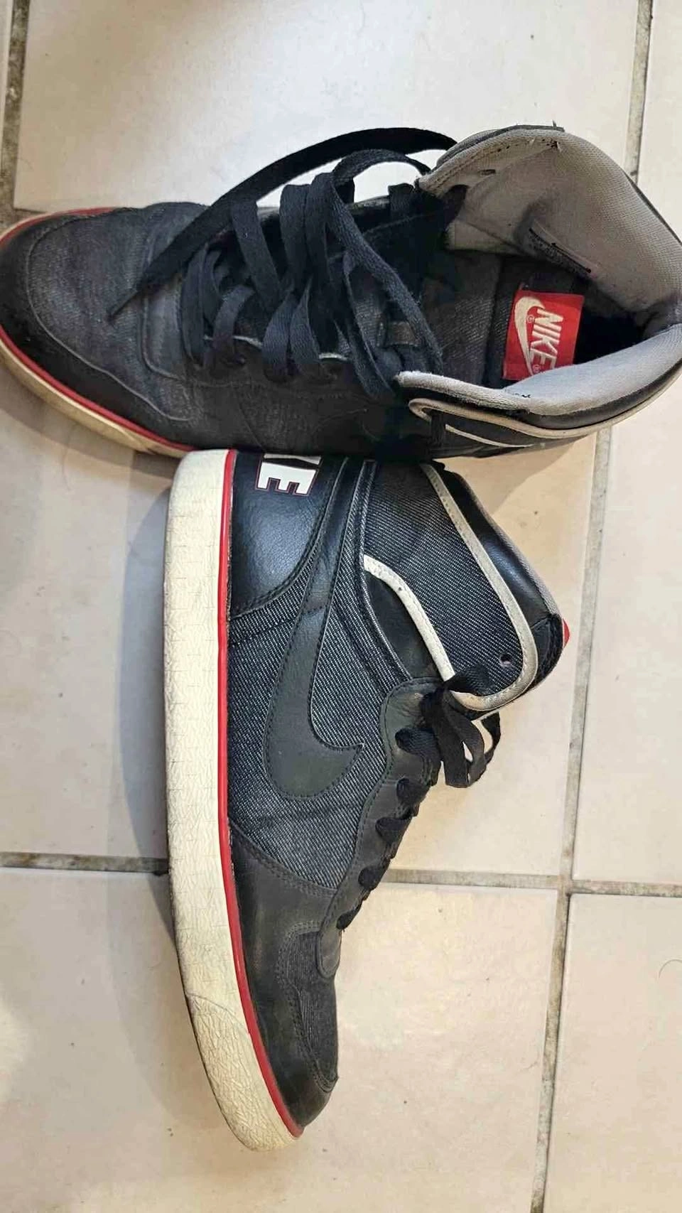 31Nike Big Nike High AC Sneakers (Size 10.5 US / 9.5 UK / 44.5 EU). Color: Black with red/white accents. Size: US 10.5 / UK 9.5 / EU 44.5 (28.5 cm). Condition: Pre-owned, gently used, some wear on the soles and midsole but overall in solid condition. All branding and logos intact. Details: High-top design with the classic oversized "NIKE" branding on the heel. Comfortable fit and great retro look - similar vibe to Nike Dunk/Terminator. Price: C$35 (OBO) Pickup near Lansdowne and Bloor Intersection, 5 mins walk to Lansdowne Subway Station, Toronto.