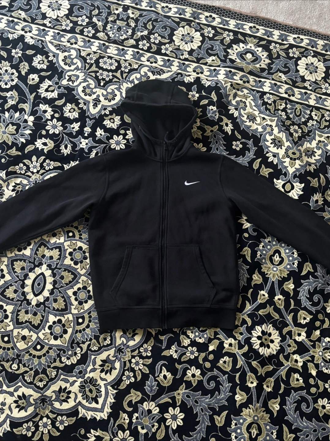Here's a comfy black Nike full zip hoodie! It's in great condition and ready for a new home. Perfect for layering or just lounging around