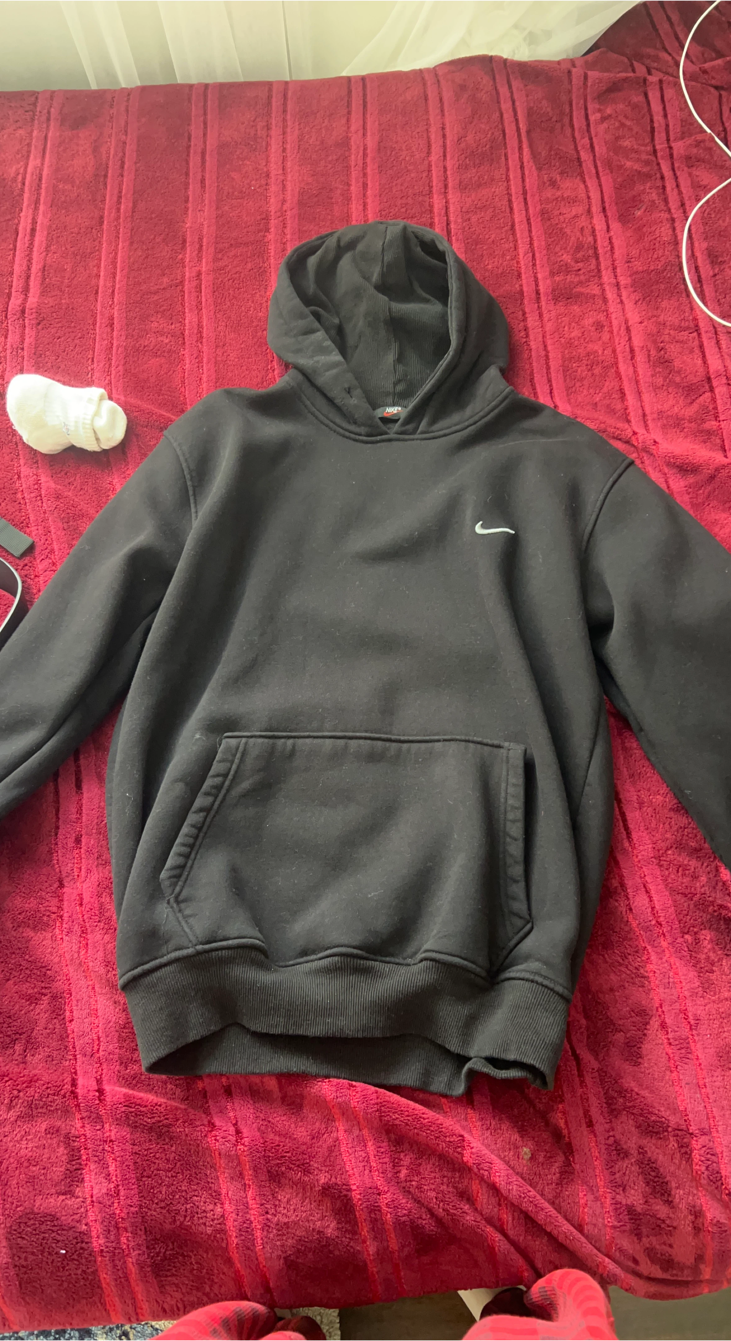 18Selling a black Nike hoodie in size XXL. It has a classic design with the Nike swoosh logo. Perfect for staying cozy!