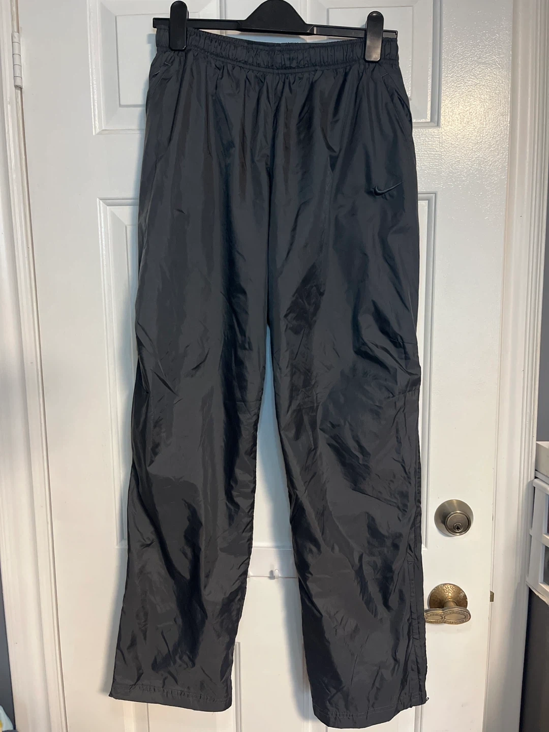49Selling a pair of Nike black nylon track pants in size medium! These pants are in great condition and feature a comfortable elastic waistband and zippered pockets.perfect for winter