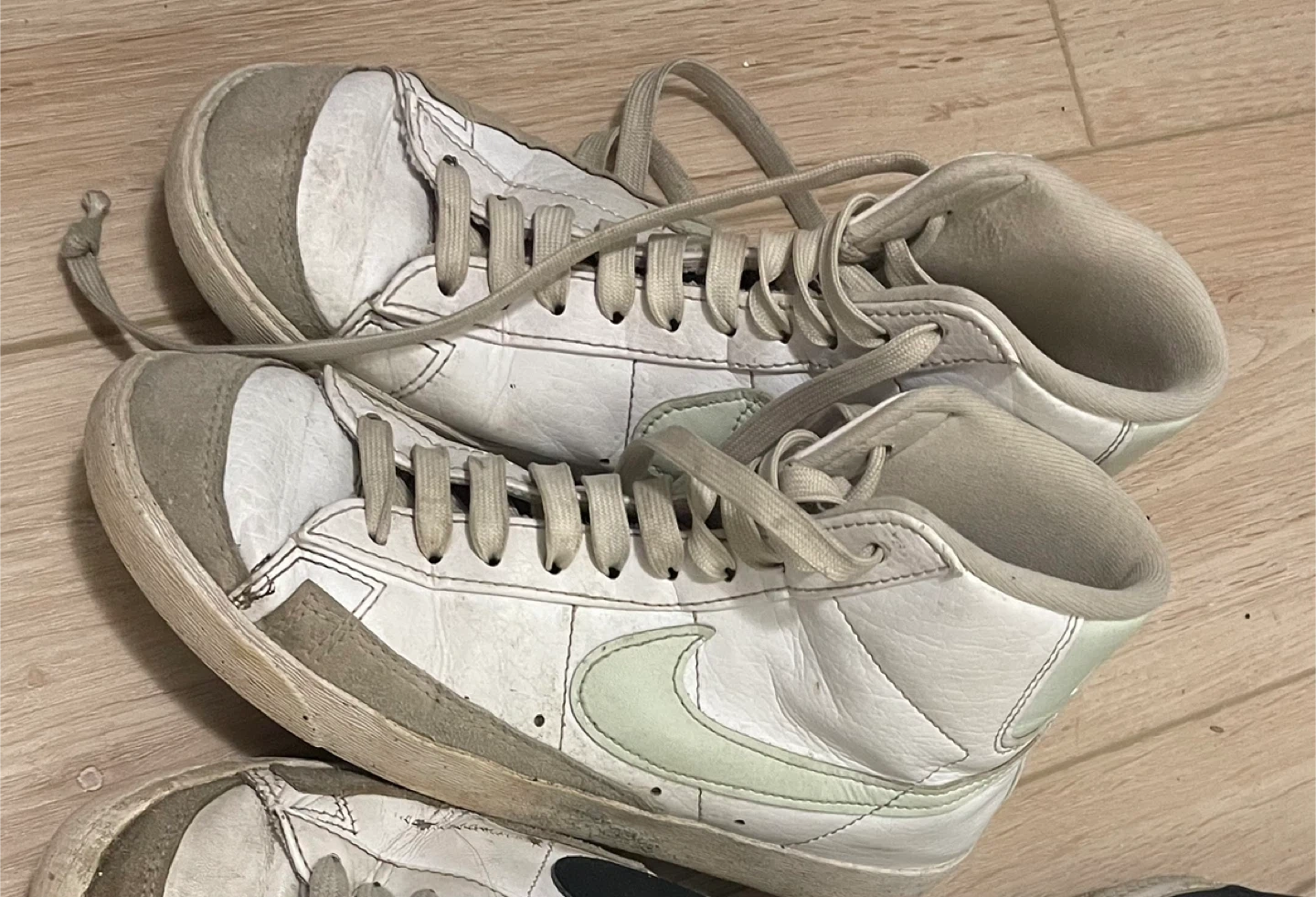 36Selling a pair of Nike Blazer Mid '77 sneakers in white. They show signs of wear, as seen in the photos. Still lots of life left in them!