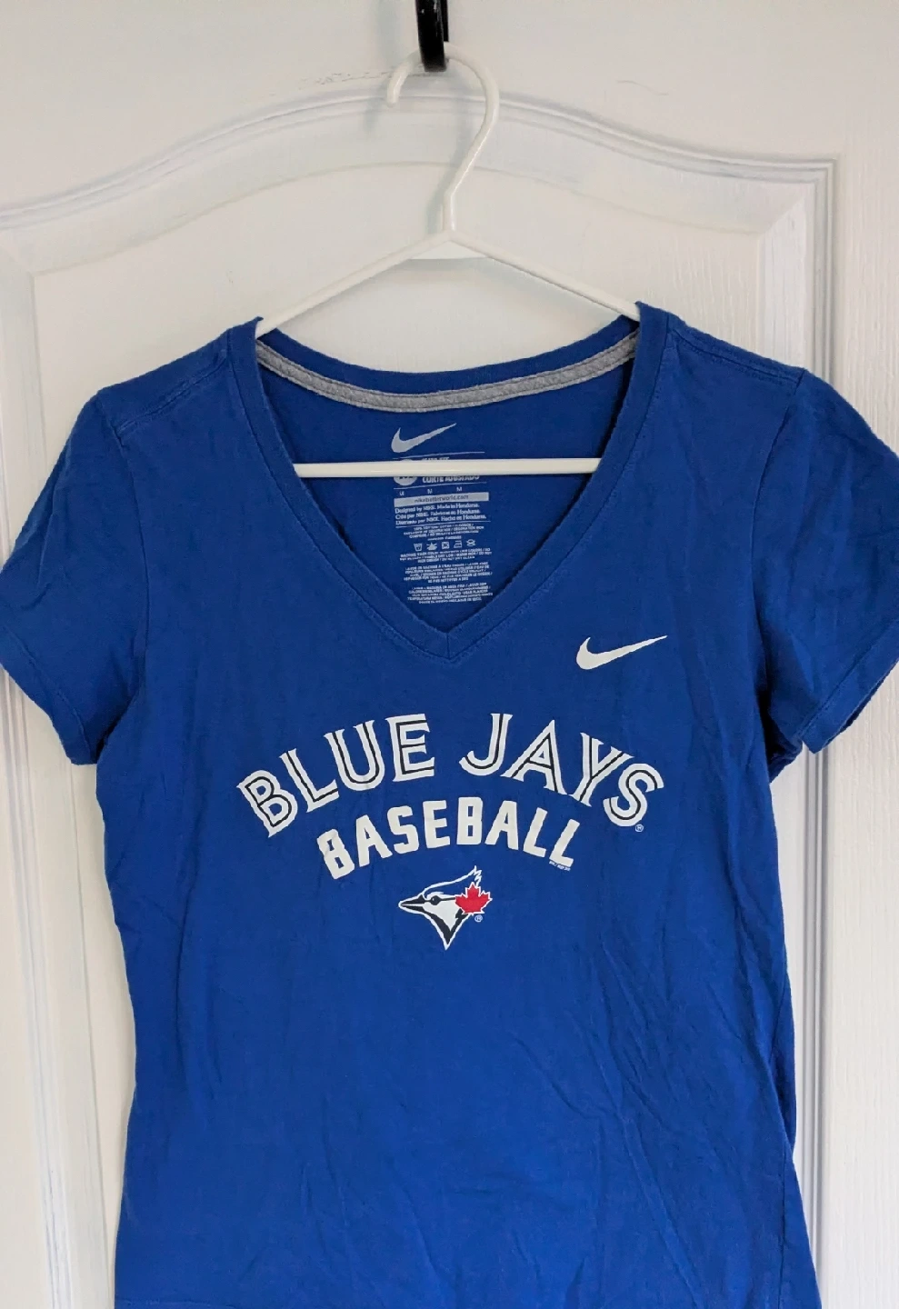 15Selling a Nike Blue Jays baseball t-shirt in size medium. It's a slim fit and made of 100% cotton. The shirt is blue with the Blue Jays logo on the front. Perfect for any Blue Jays fan! if the ad is still up it's available